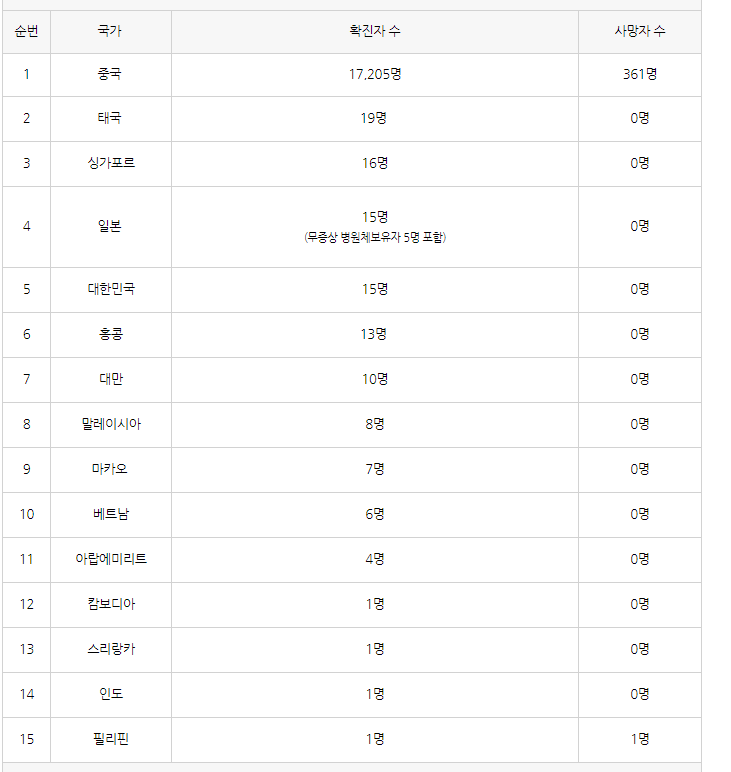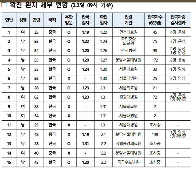 2020년 01월 03일 12:11 기준 확진자 리스트
