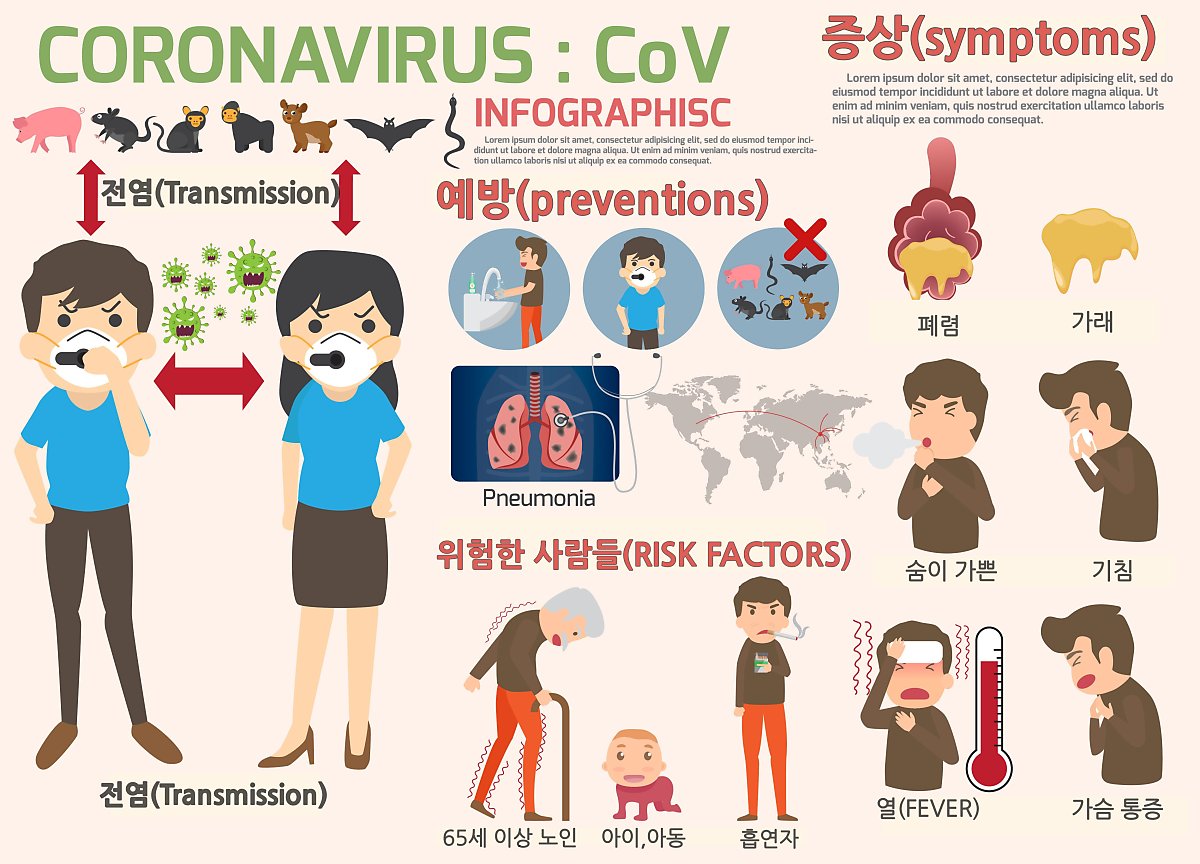 증상 : 발열, 기침, 호흡곤란, 근육통, 설사
