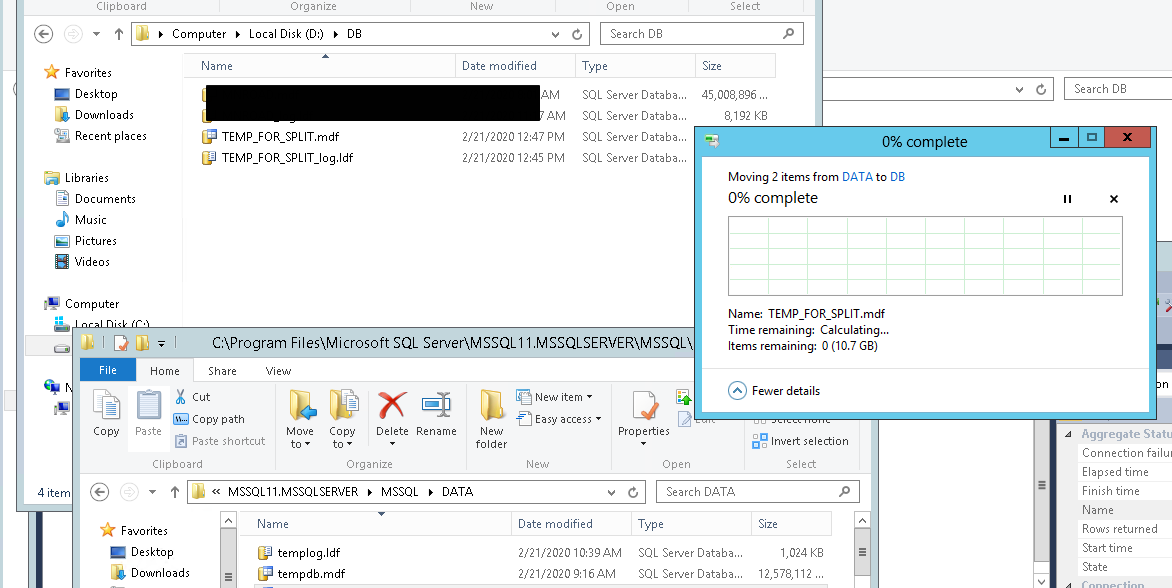 과정 수행 중 오류가 발생해서 MDF/LDF를 이동하게 되었습니다.