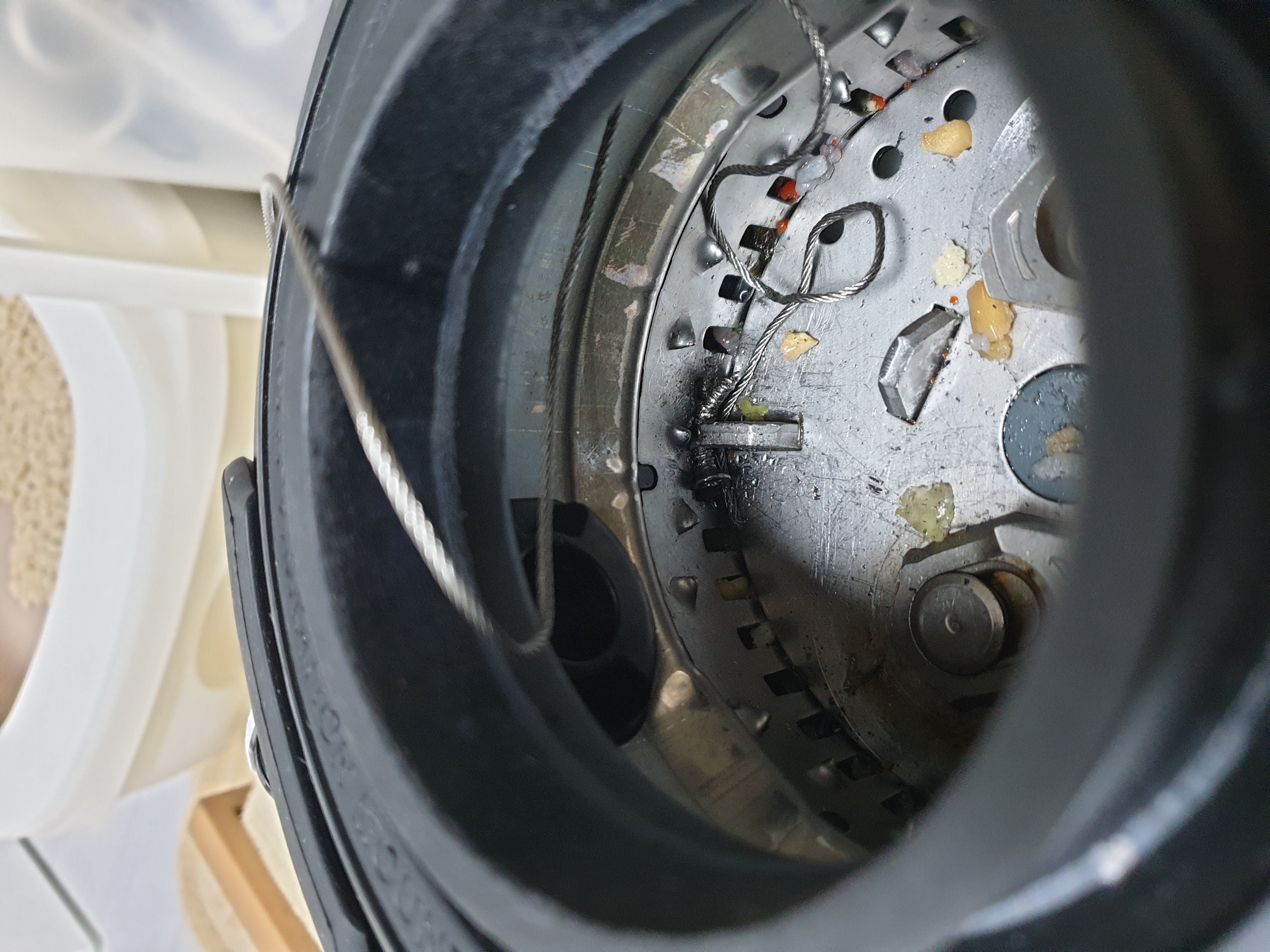 불행인지 다행인지 이번에 들어간 나사는 사진에서 보는바와 같이 분쇄기 부분에 딱 걸려서 있습니다.