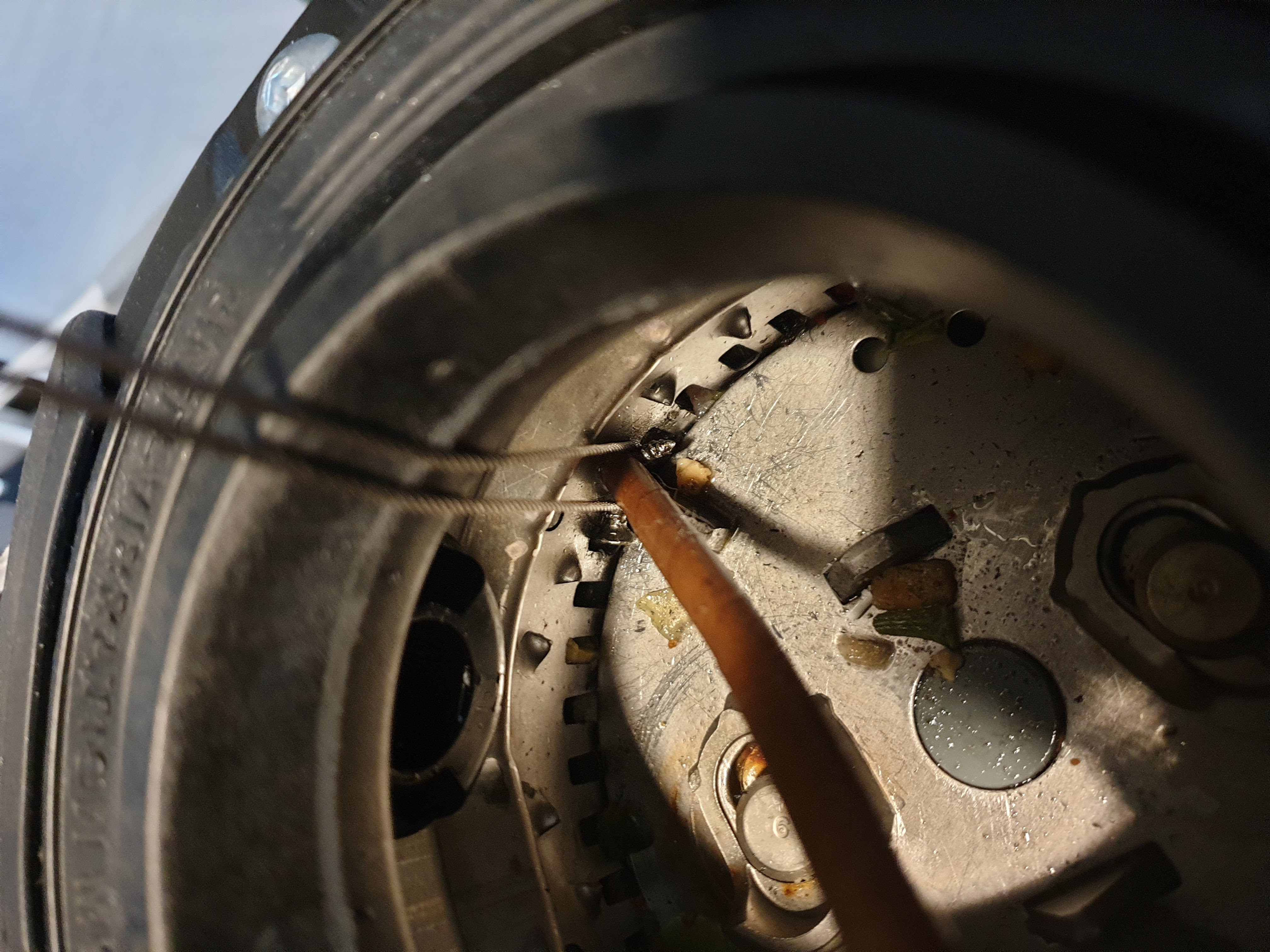 3. 회전판을 반대방향으로 돌려본다(망치 등으로) --> 꿈쩍도 안함