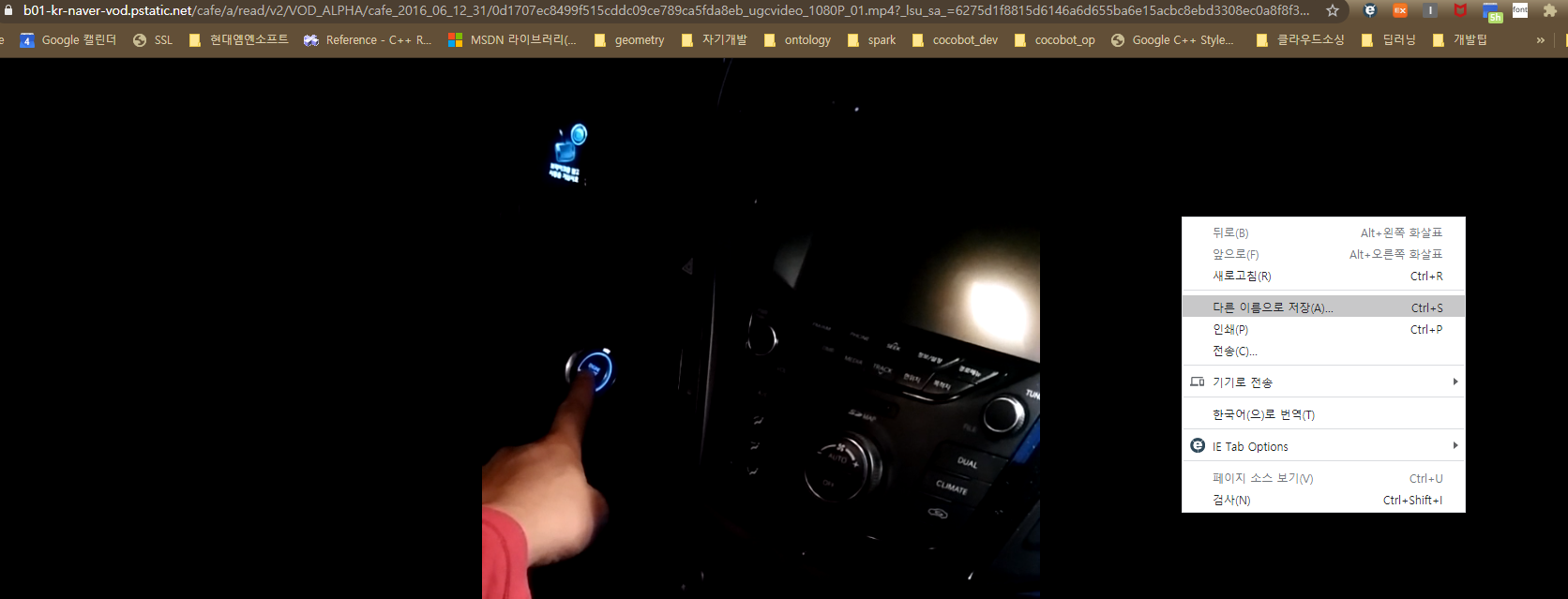 5. 열린 동영상 창에서 우클릭하여 동영상 다른이름으로 저장하기