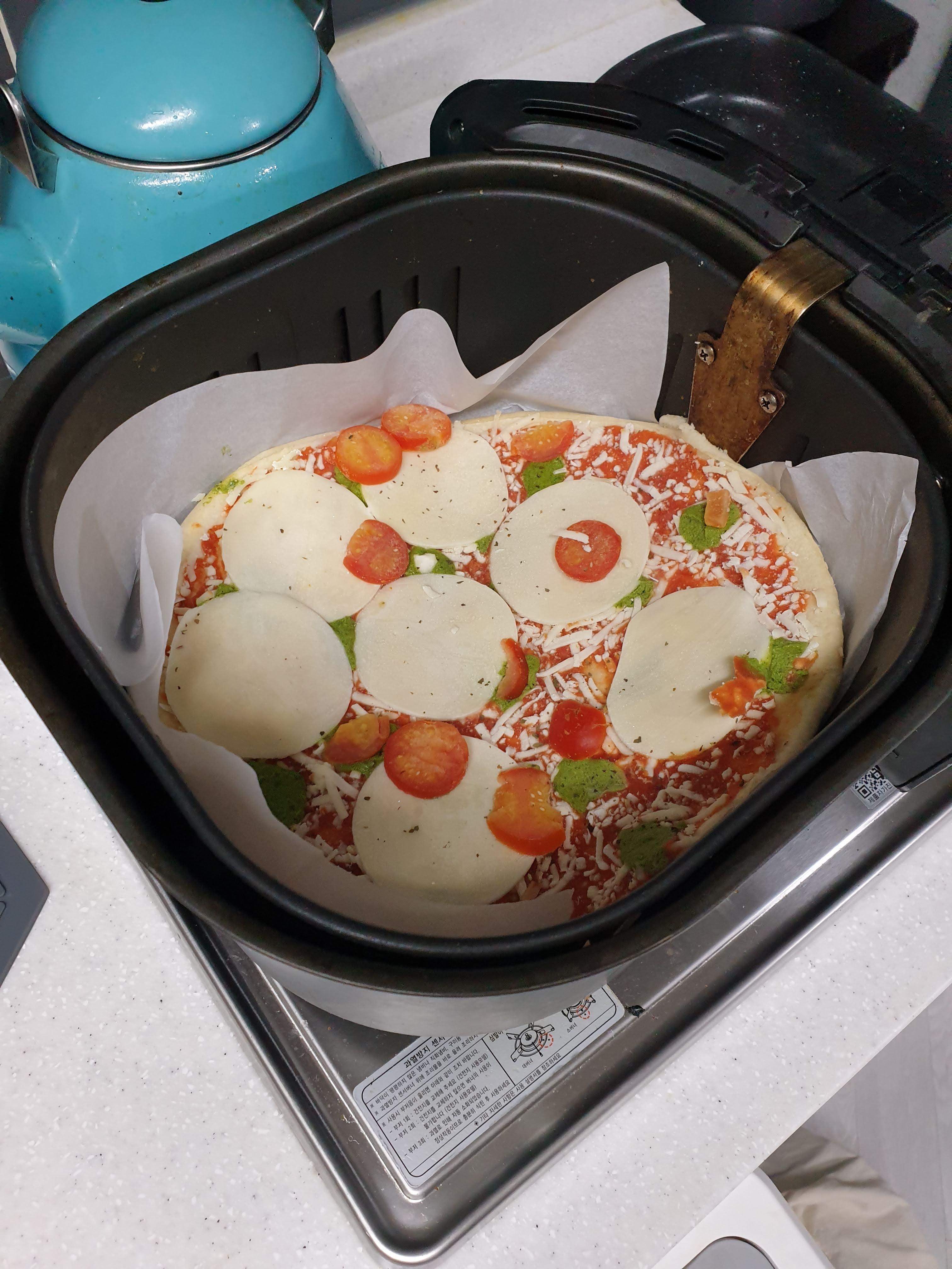 저는 냉동 상태의 피자를 살짝 우겨 넣었는데 이렇게 하셔도 되고,
