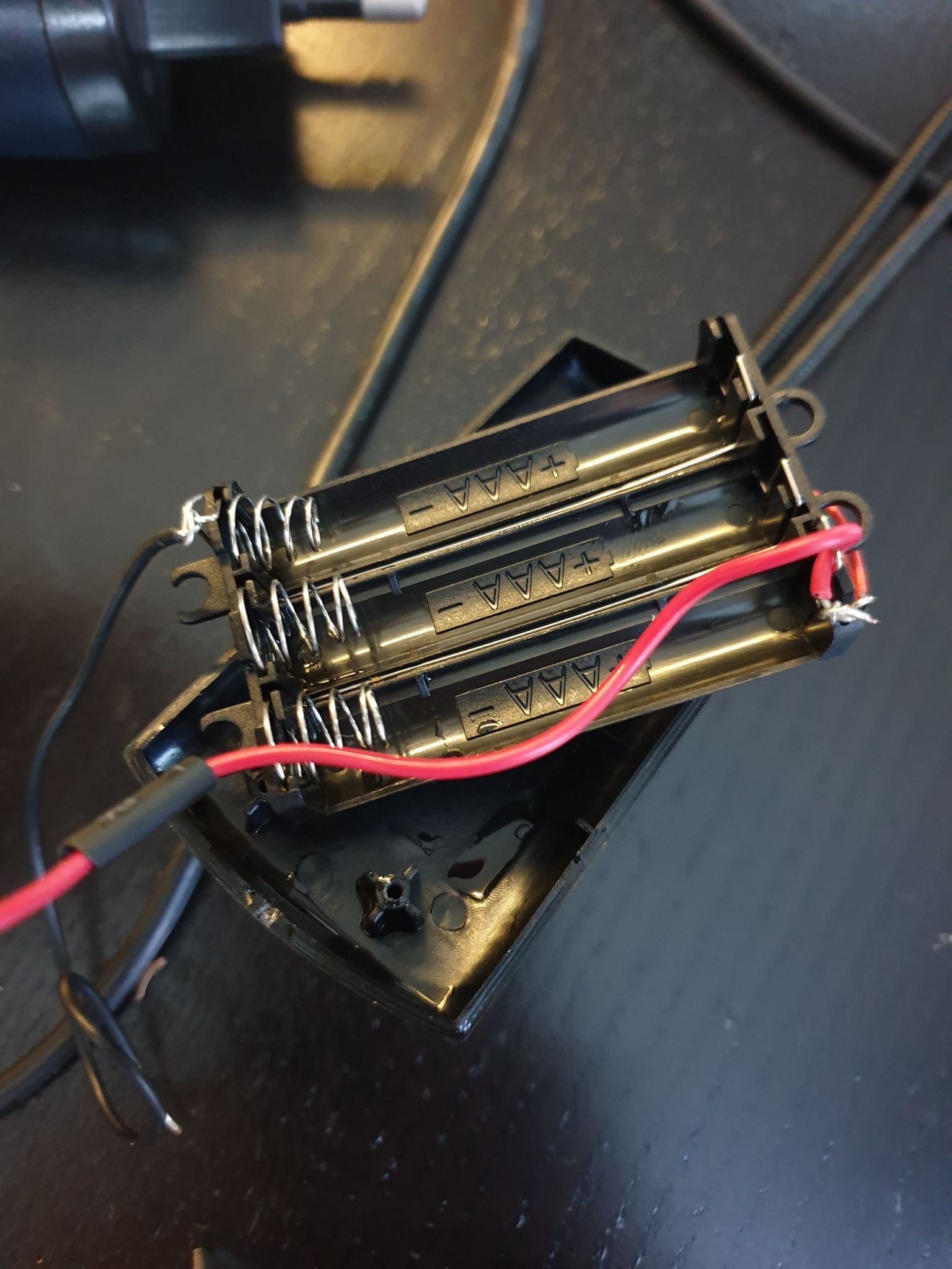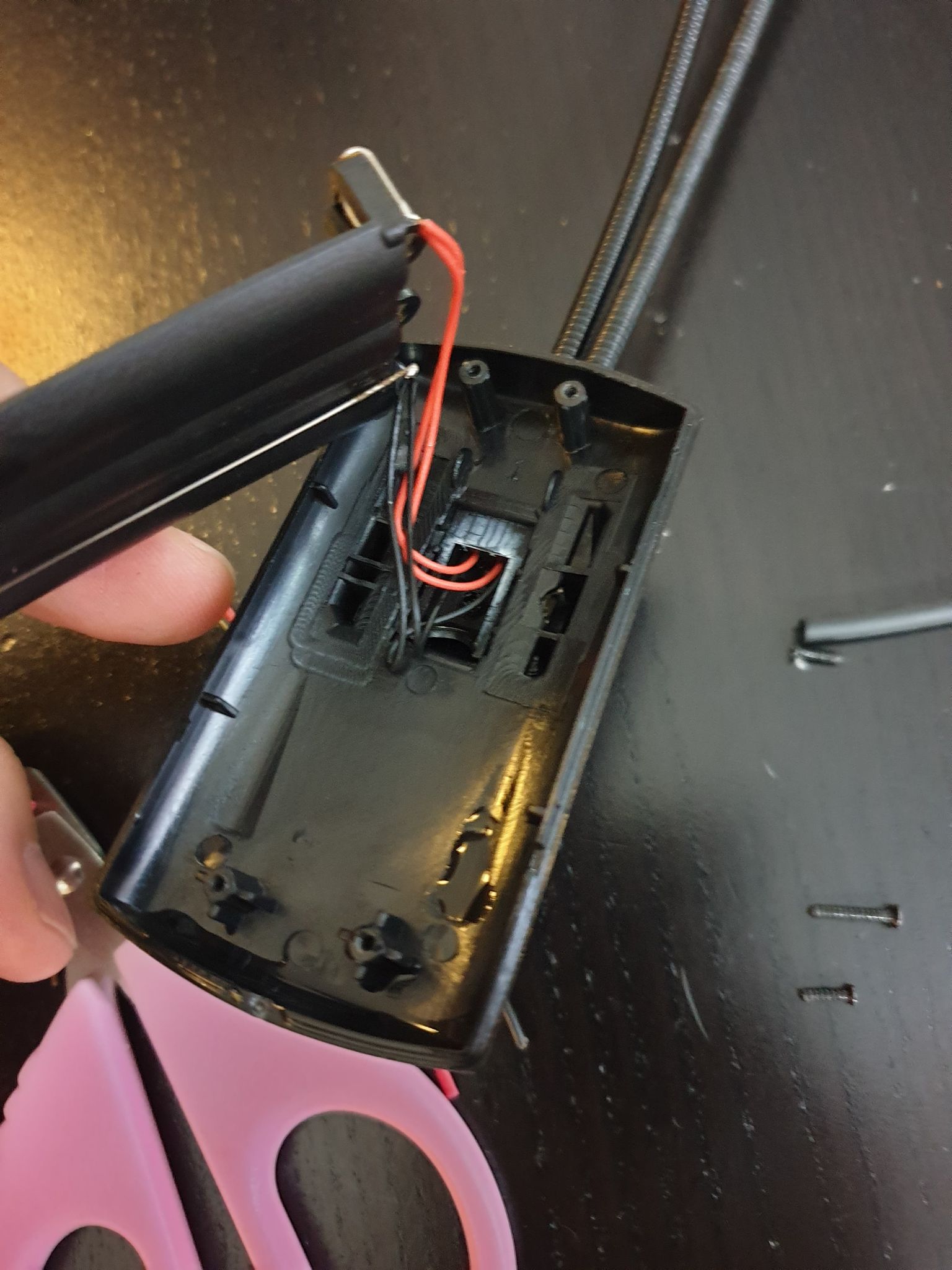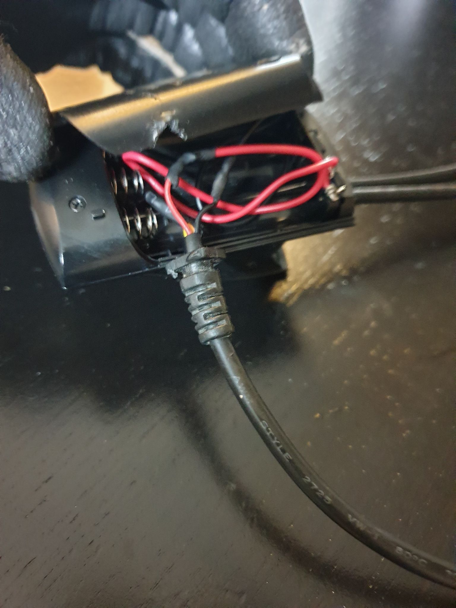 5. 조립, 배터리 뚜껑에 구멍을 하나 내고 전원선을 빼주었습니다.