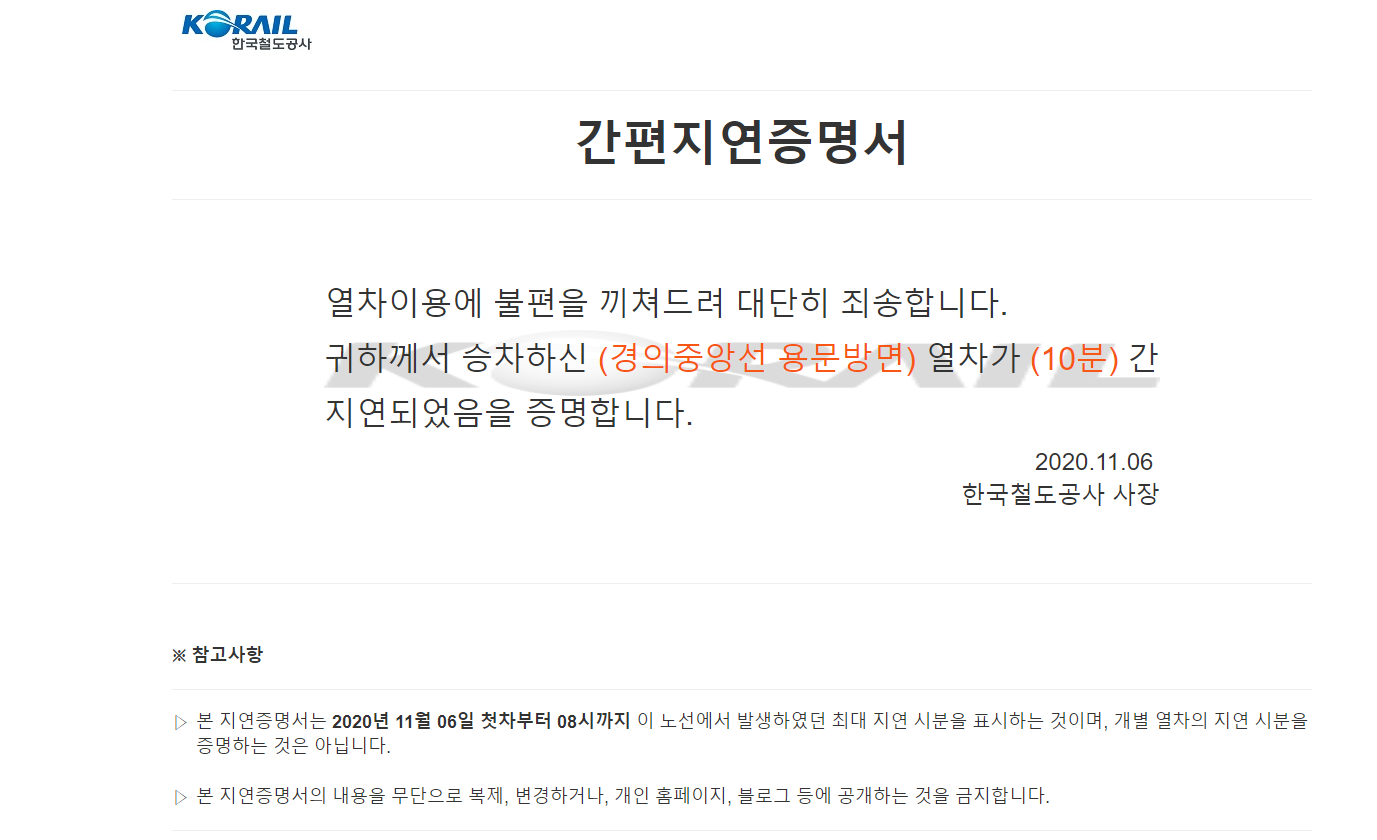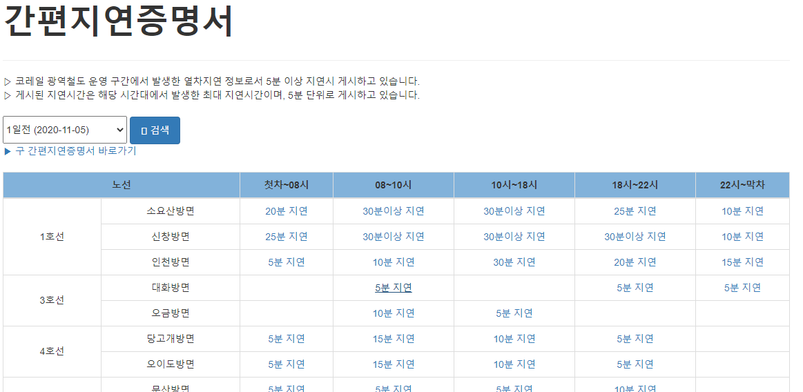 기존에 지하철 역사에서 지연증명서를 받았었는데, 이제 온라인으로 간편하게 발급 가능합니다.