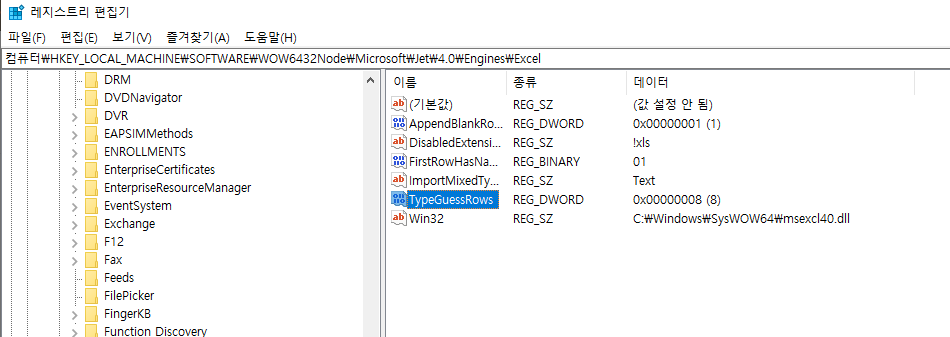 2.TypeGuessRows 위치 : TypeGuessRows 값 조정 255자 제한 해제