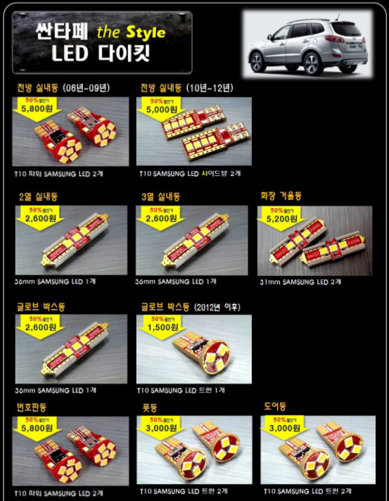 구매한 것은 싼타페 CM 실내등 교체 풀셋트입니다.