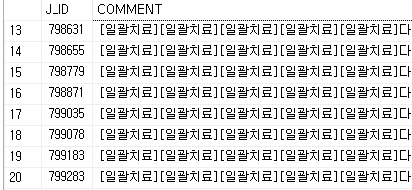WHERE COMMENT LIKE '[[]일괄치료][[][일괄치료]%'