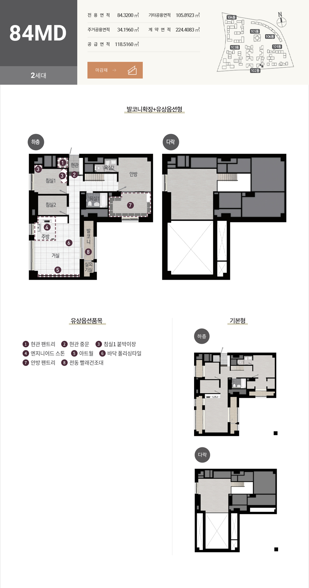 복층구성도 다양합니다. 다락이 있는 구조, 테라스 있는 구조 등..