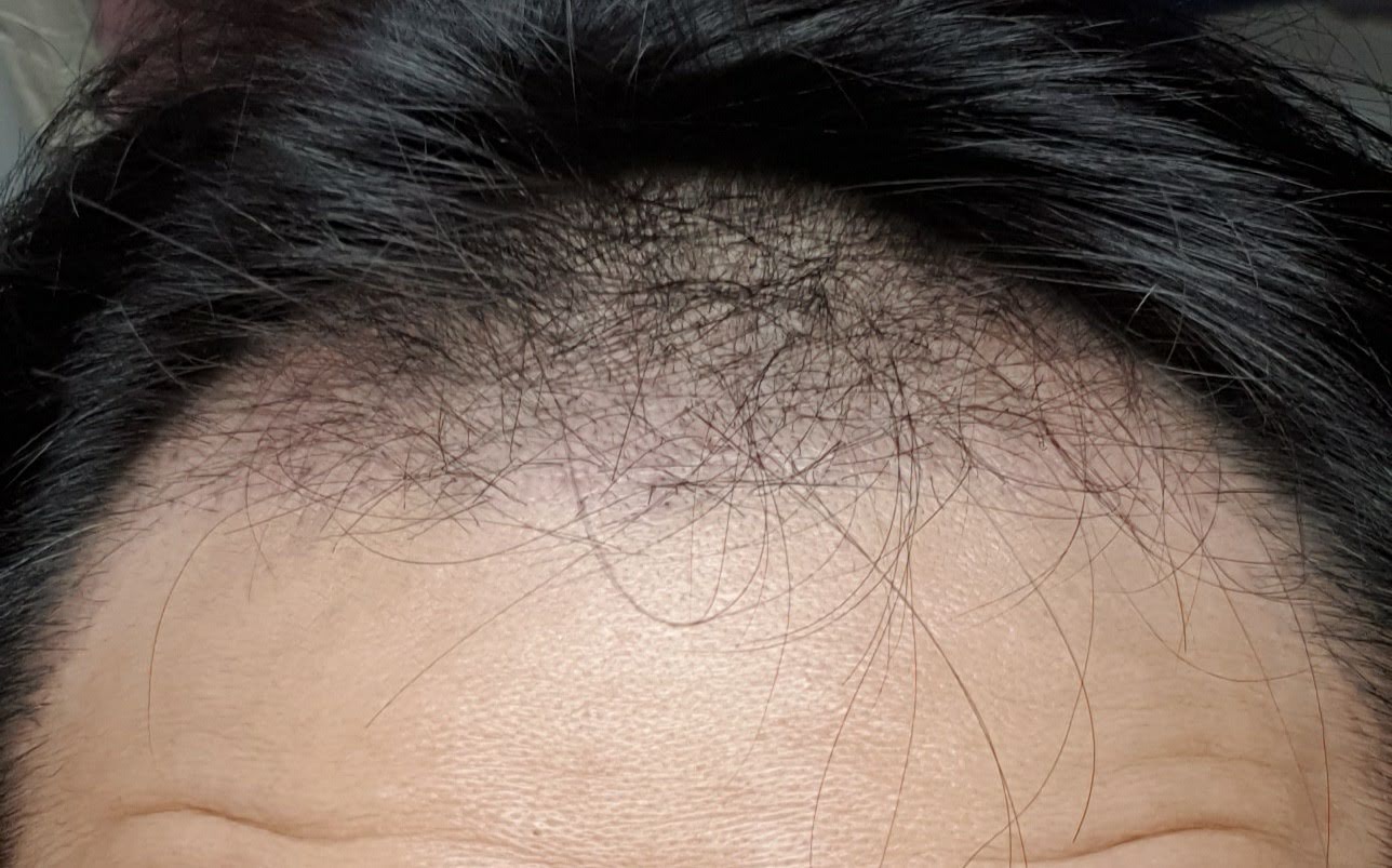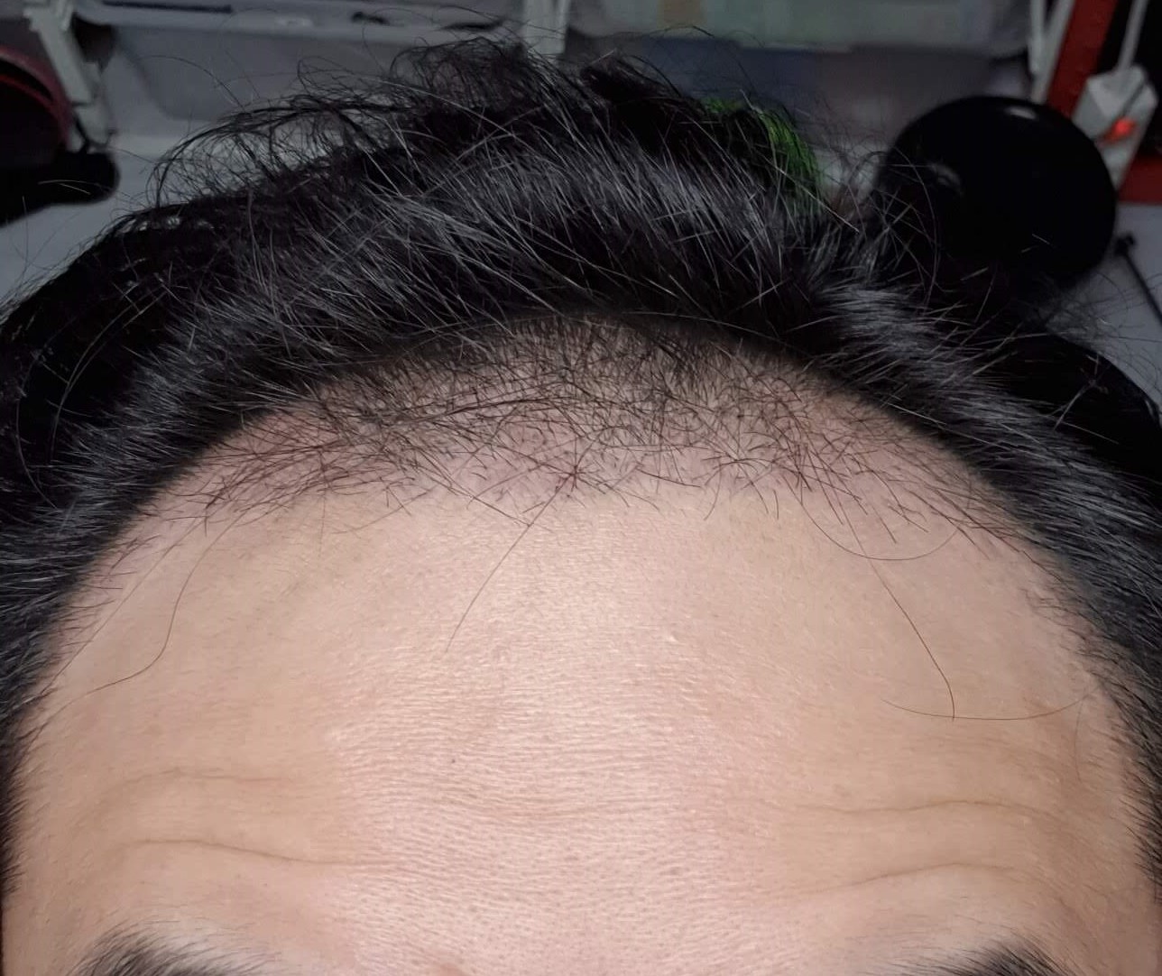 뒷머리 쪽은 약간의 모낭염 증세(약간 빨간)가 있을 뿐 거의 티가 안납니다.