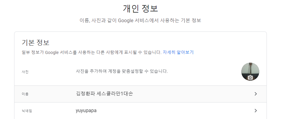 여기 구글 계정으로 들어가서 변경하면 이름이 변경 됩니다.