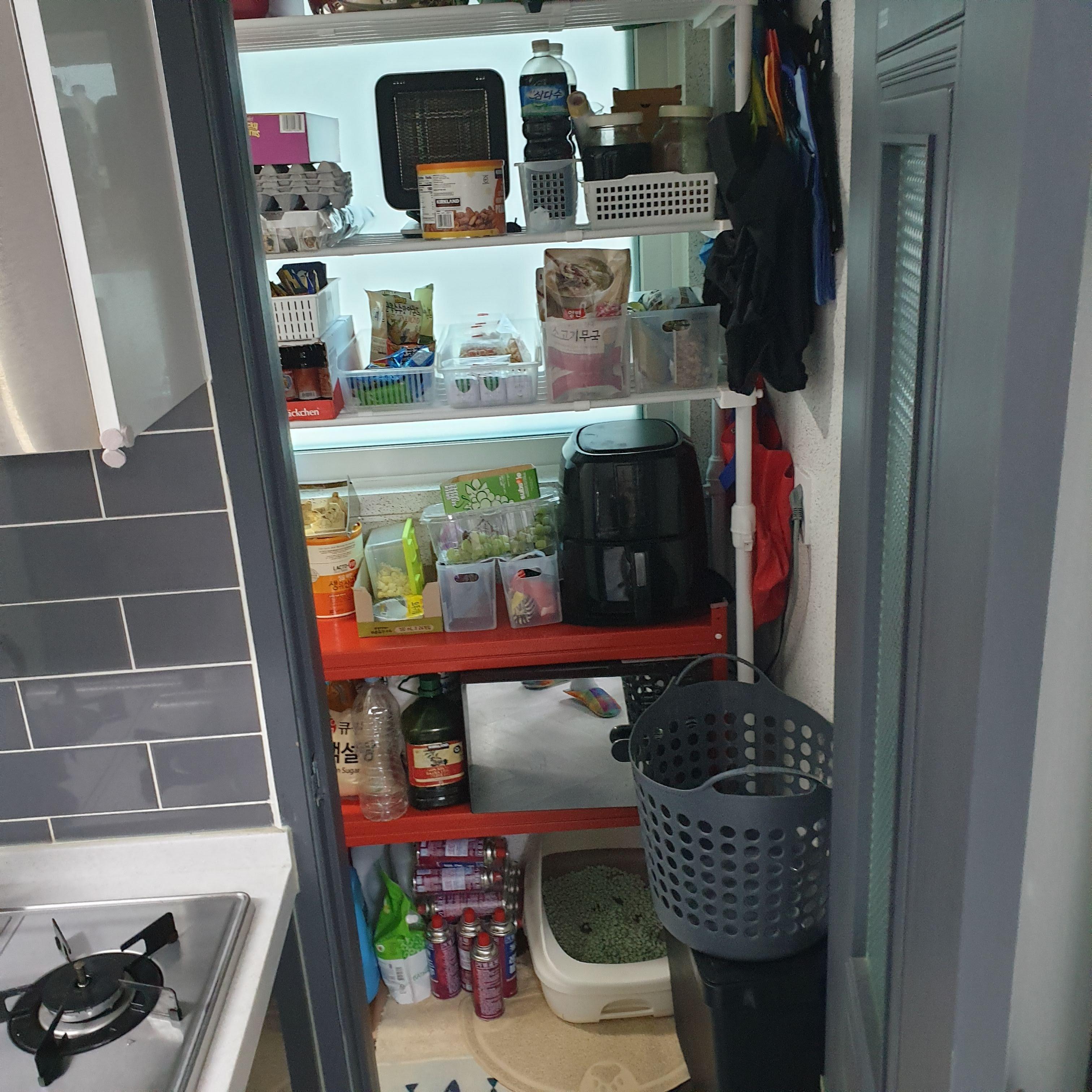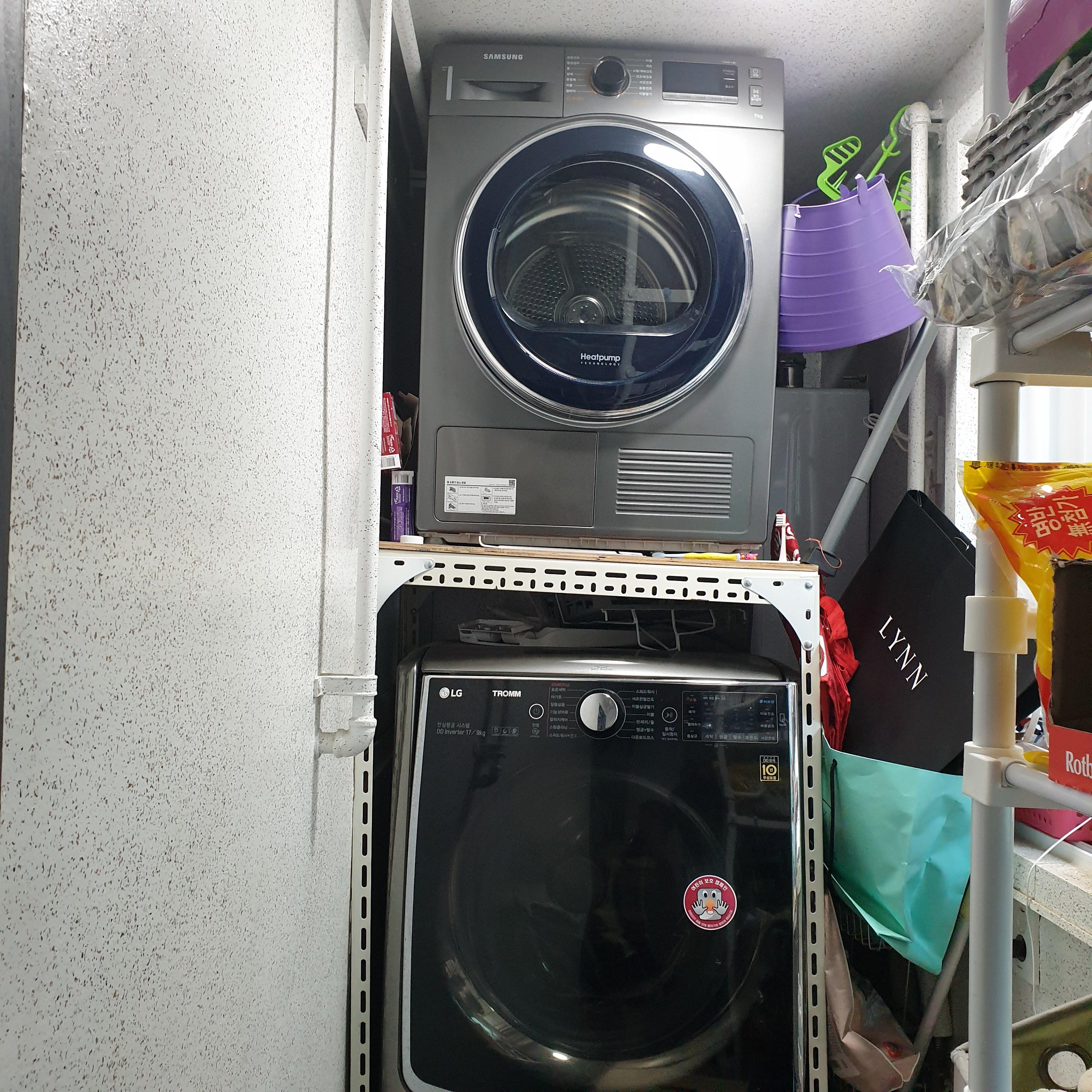 다용도실 : LG트윈워시(세탁기+작은세탁기)와 건조기를 놓고 쓸 수 있을 정도로 크고 높습니다. 안쪽으로 문을 열리게 해 다용도실 공간을 다 쓸 수 있도록 수정했습니다.