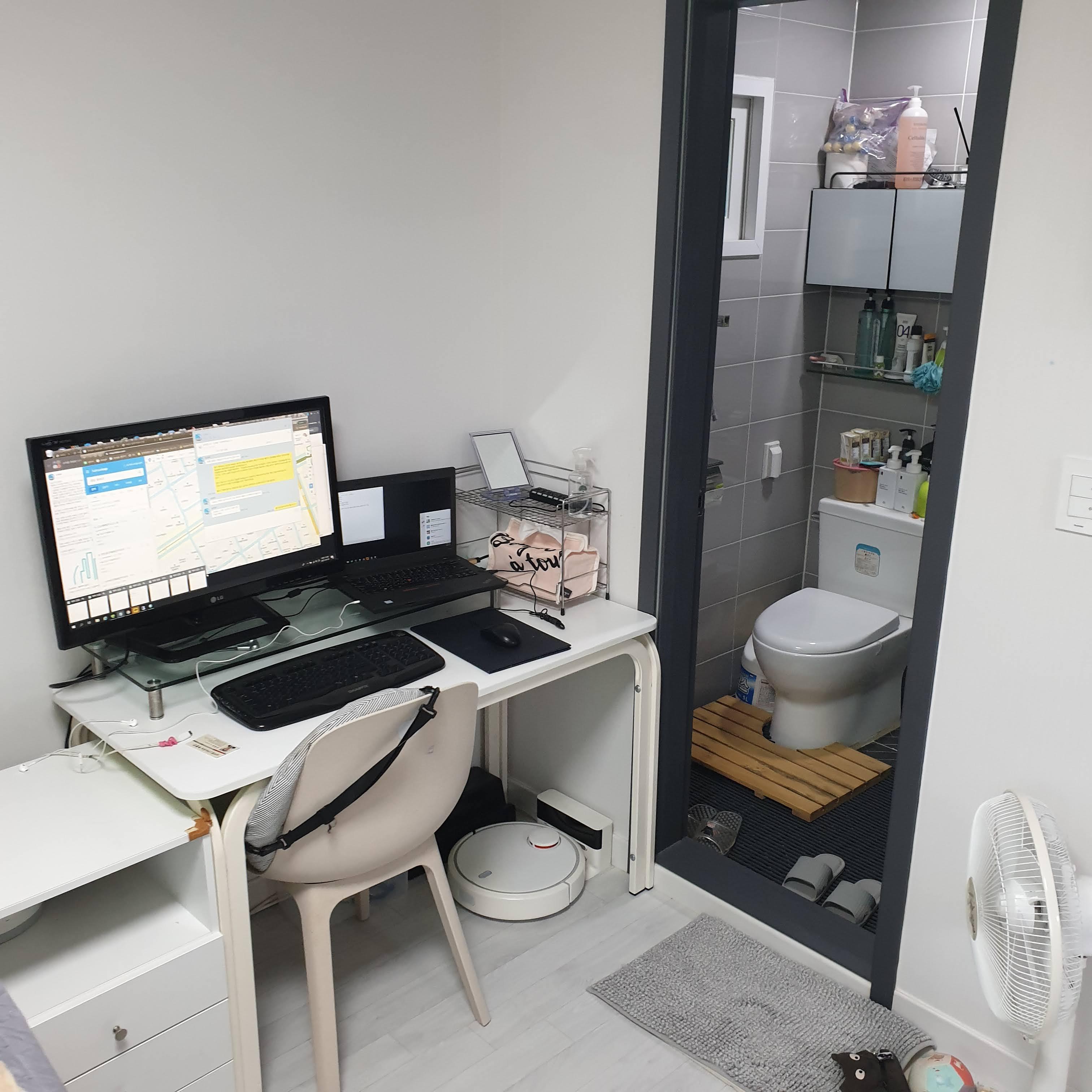 안방 : 퀸사이즈 침대 두개들어갈 수 있는 사이즈입니다. 지금은 침대와 재택근무용 책상을 놓고 사용하고 있습니다. 안방 화장실이 따로 있습니다.