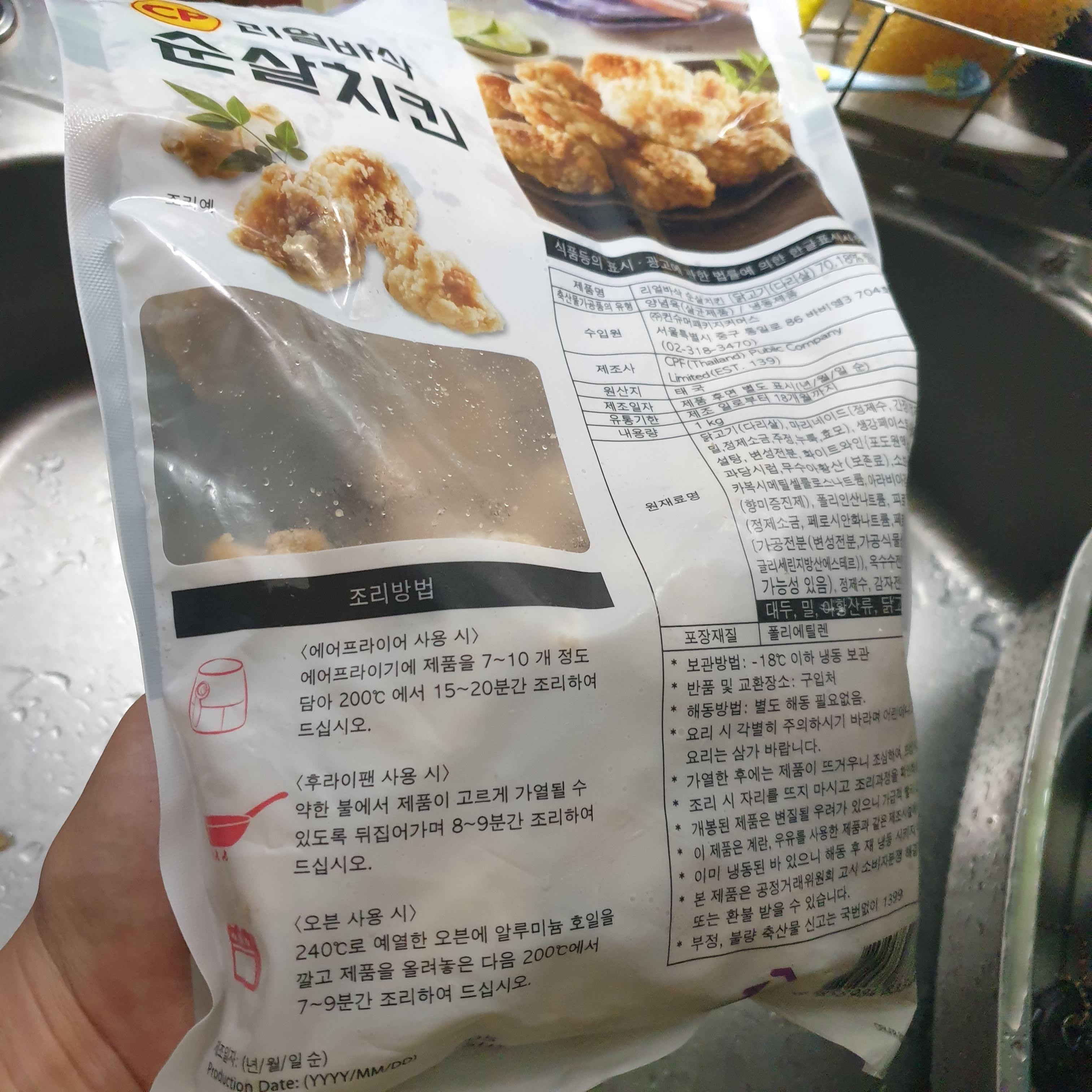 조리방법은 역시나 냉동 치킨류들과 동일합니다. 바삭함을 더 많이 느끼기 위해 14개를 200도에서 15분 돌리고 추가로 5분 돌려 주었습니다. 다음엔 10분돌리고 뒤집어서 10분 돌려야 겠습니다. 조금 덜바삭한 부분이 있어요.