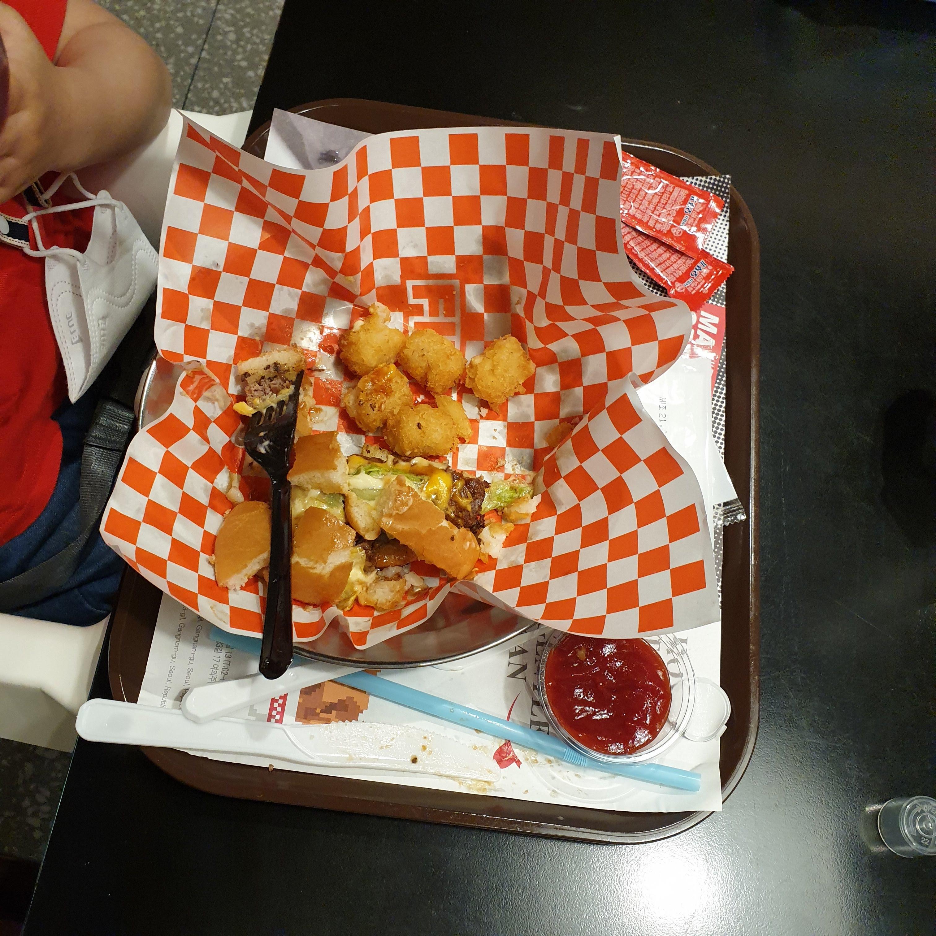퇴식구가 다른 곳은 모두 퇴식 트레이에 올리면되는데 햄버거집만 따로 가게앞에 반납해야하더군요. 이상.. ㅎㅎ