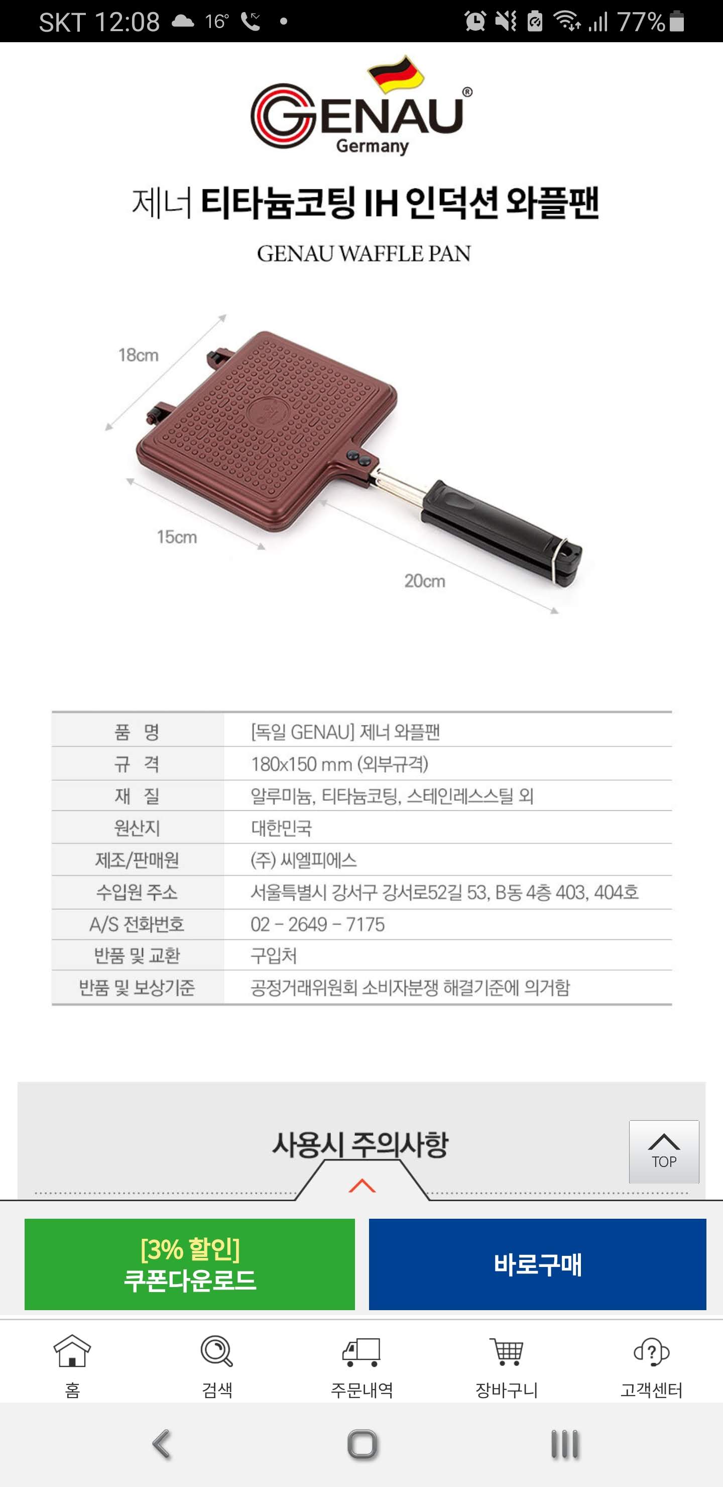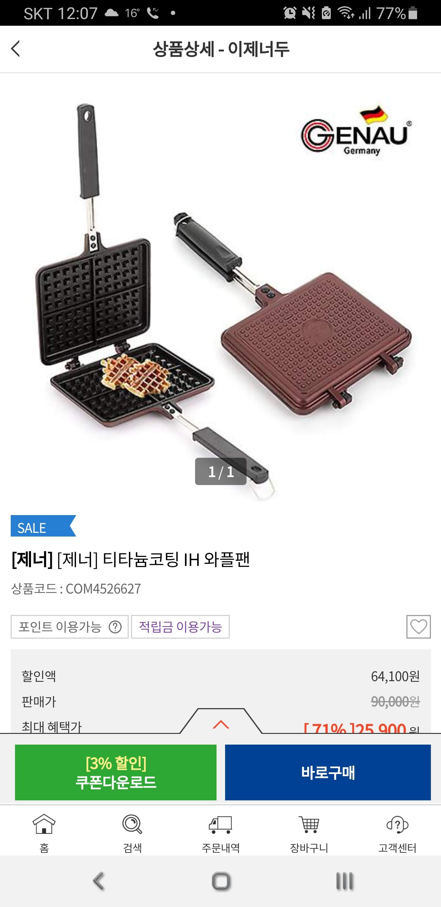 제너社 티타늄코팅 IH 인덕션 와플팬을 구매하게 되었습니다.