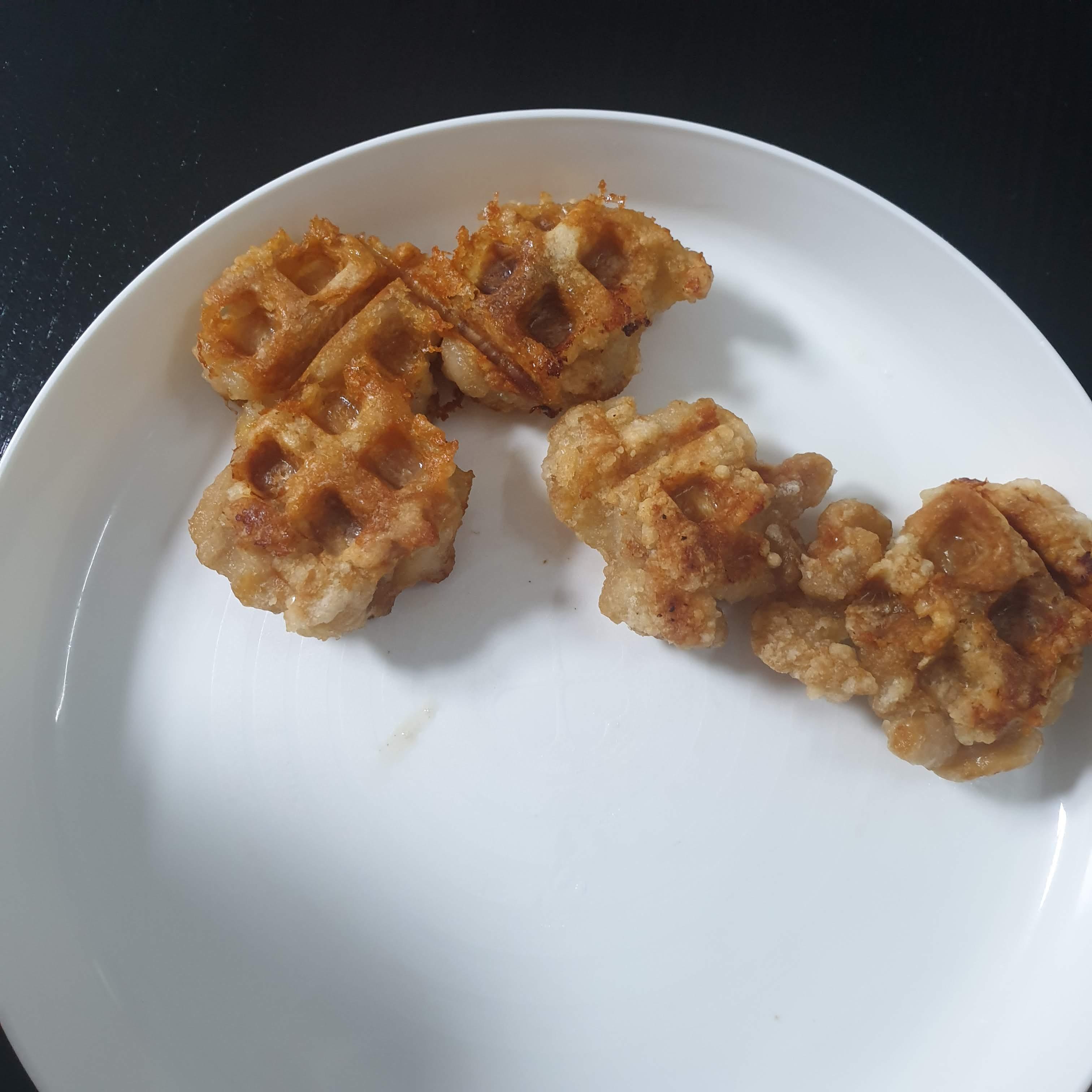(와플팬에 구운 크로플, 순살치킨입니다. 크로플은 사진에 보이는 제품을 사용했고 순살치킨은 코스트코 cp입니다.)