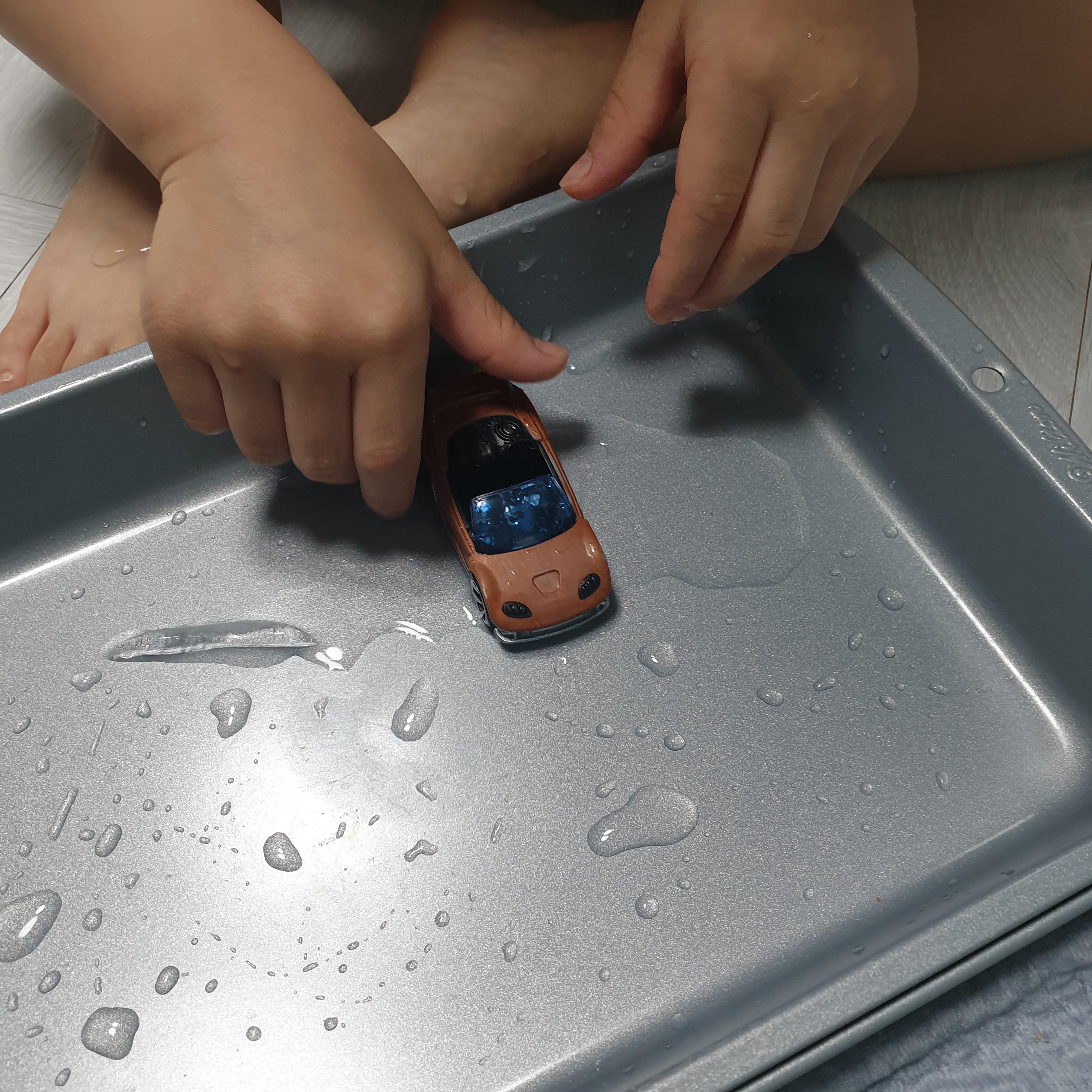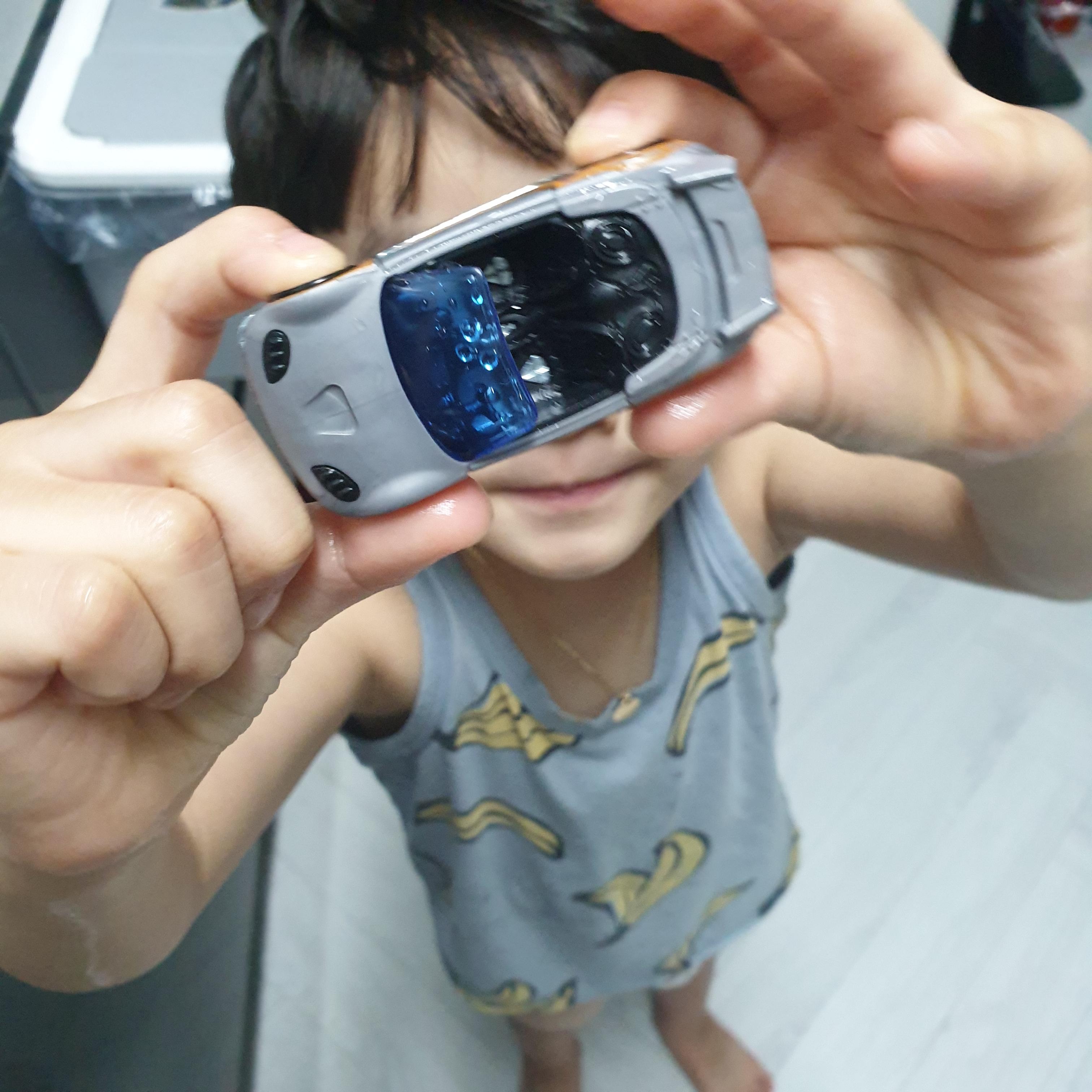 온도에 따라 색깔이 바뀌는 자동차로 사진에 있는 제품은 일반온도에 주황색이었다가 얼음물에 닿으면 빨간색이 됩니다.