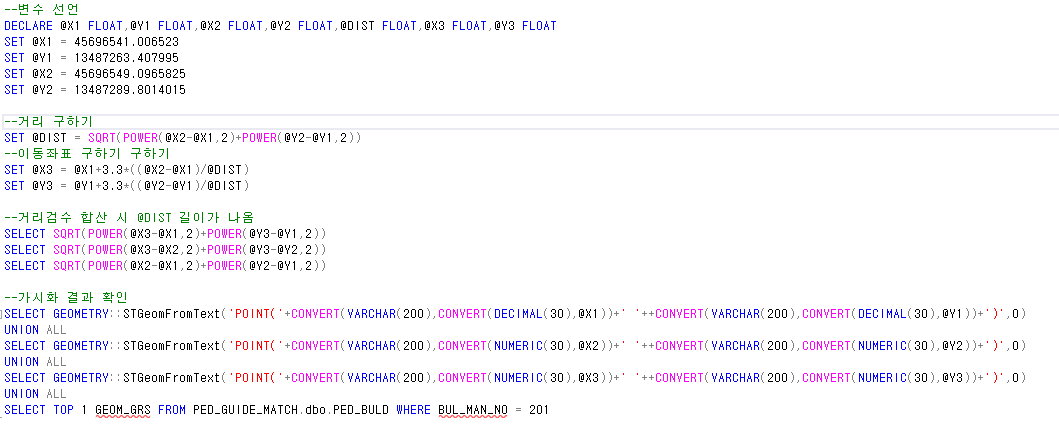 DECLARE @DIST FLOAT,@X3 FLOAT,@Y3 FLOAT