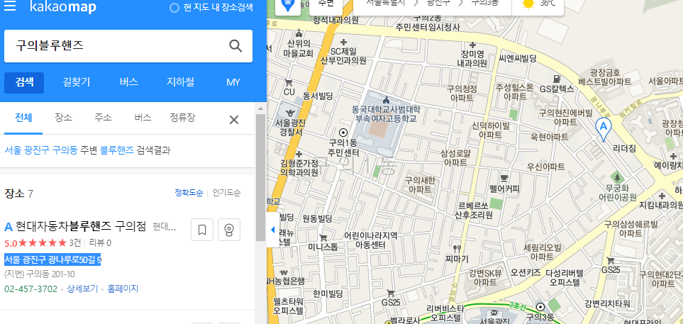 블루핸즈 주소는 '서울 광진구 광나루로50길 9' 이구요.
