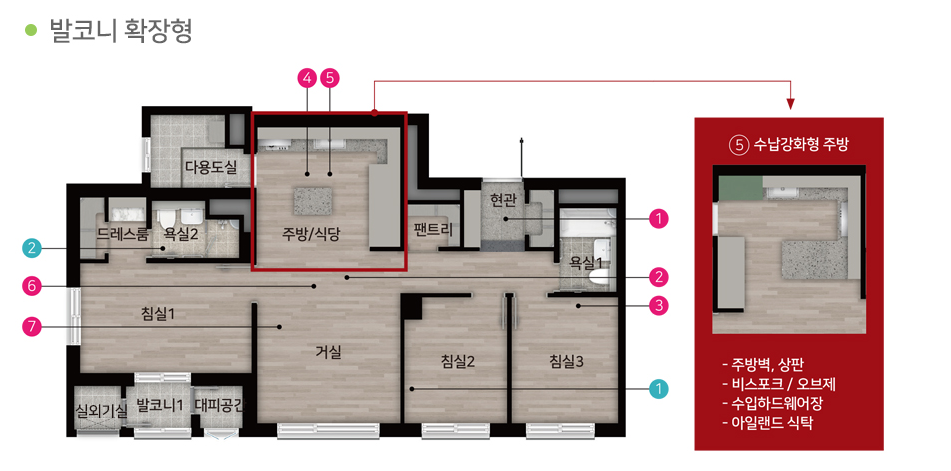 평면이 괜춘함 69로 신청했고 주방-거실 맞통풏은 안되지만 이정도면 훌륭하게 짜여진것으로 보임