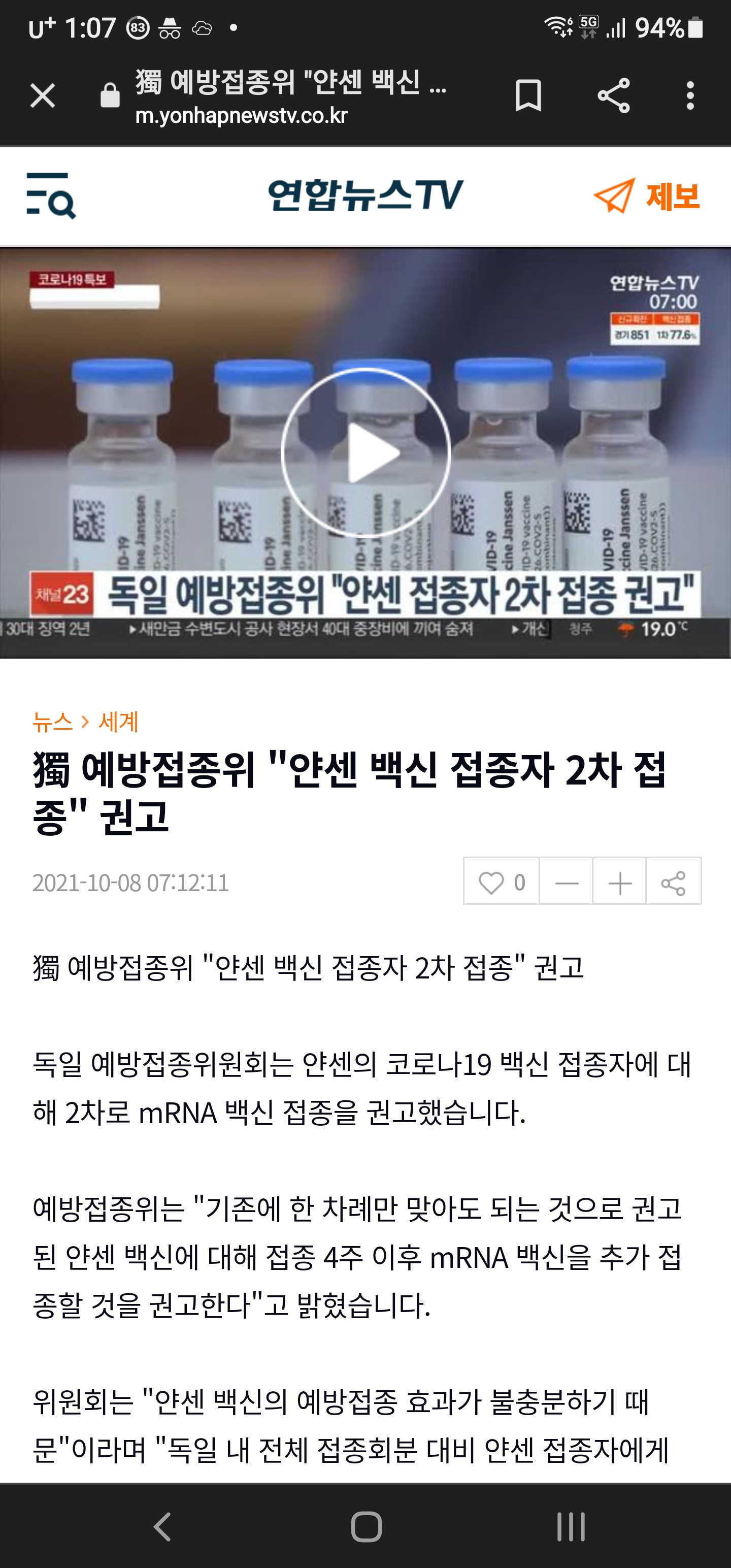 기사에서 보는것처럼 2차 접종을 권고한다는 독일..
