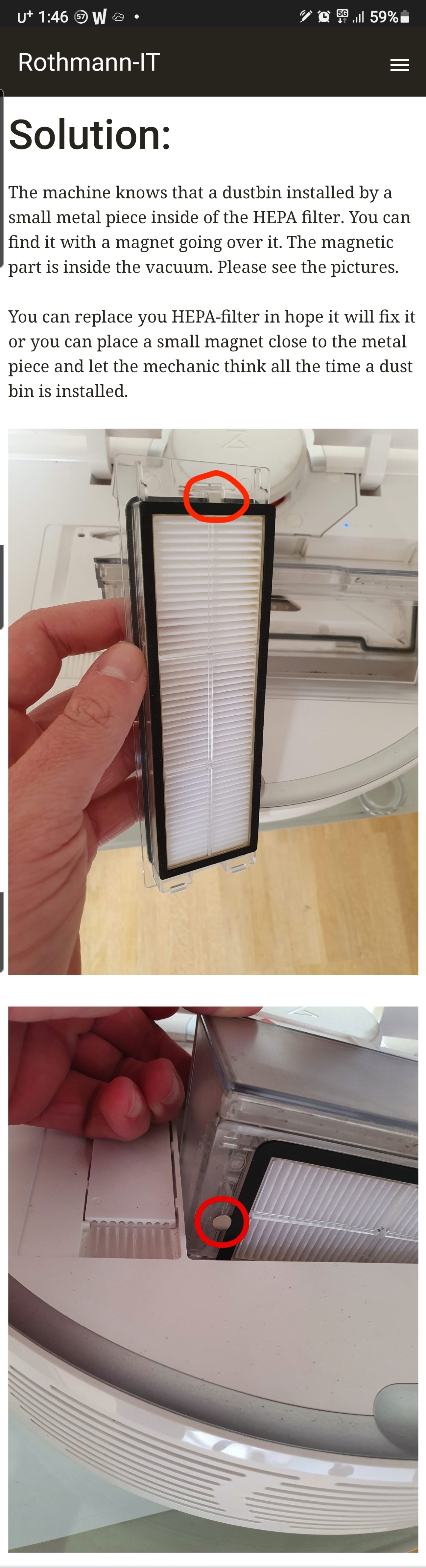 샤오미 로봇청소기 사용중에 먼지통을 넣었는데 먼지통을 인스톨해주라는 경고가 계속 나온다면 필터쪽에 있는 금속조각을 확인해보세요.