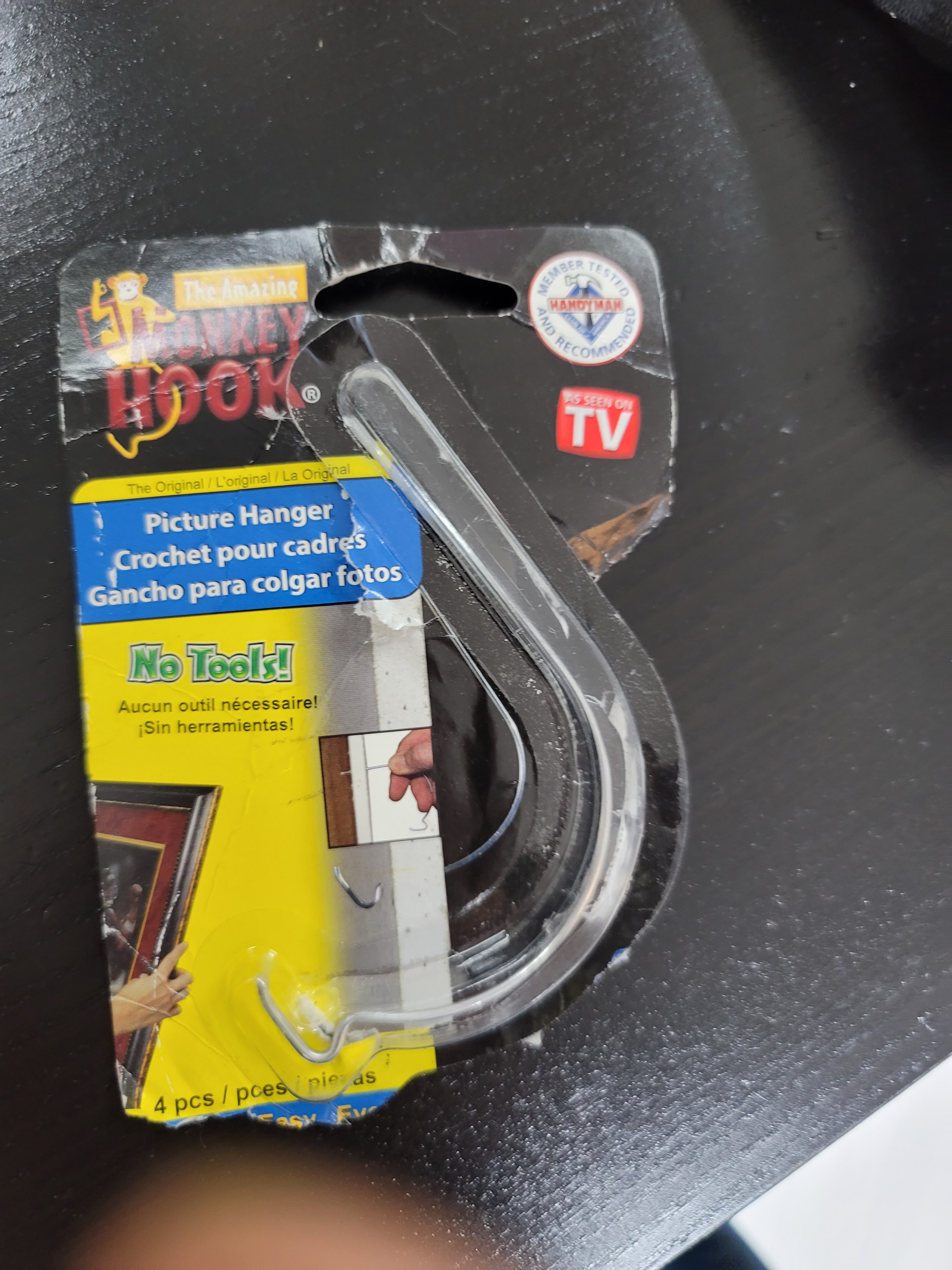 그래서 사용한게 이 monkey hook 입니다. 이건 그림처럼 이런 구조로 잡아주어서 하나에 16kg까지도 버텨 준다고하는 제품인데,