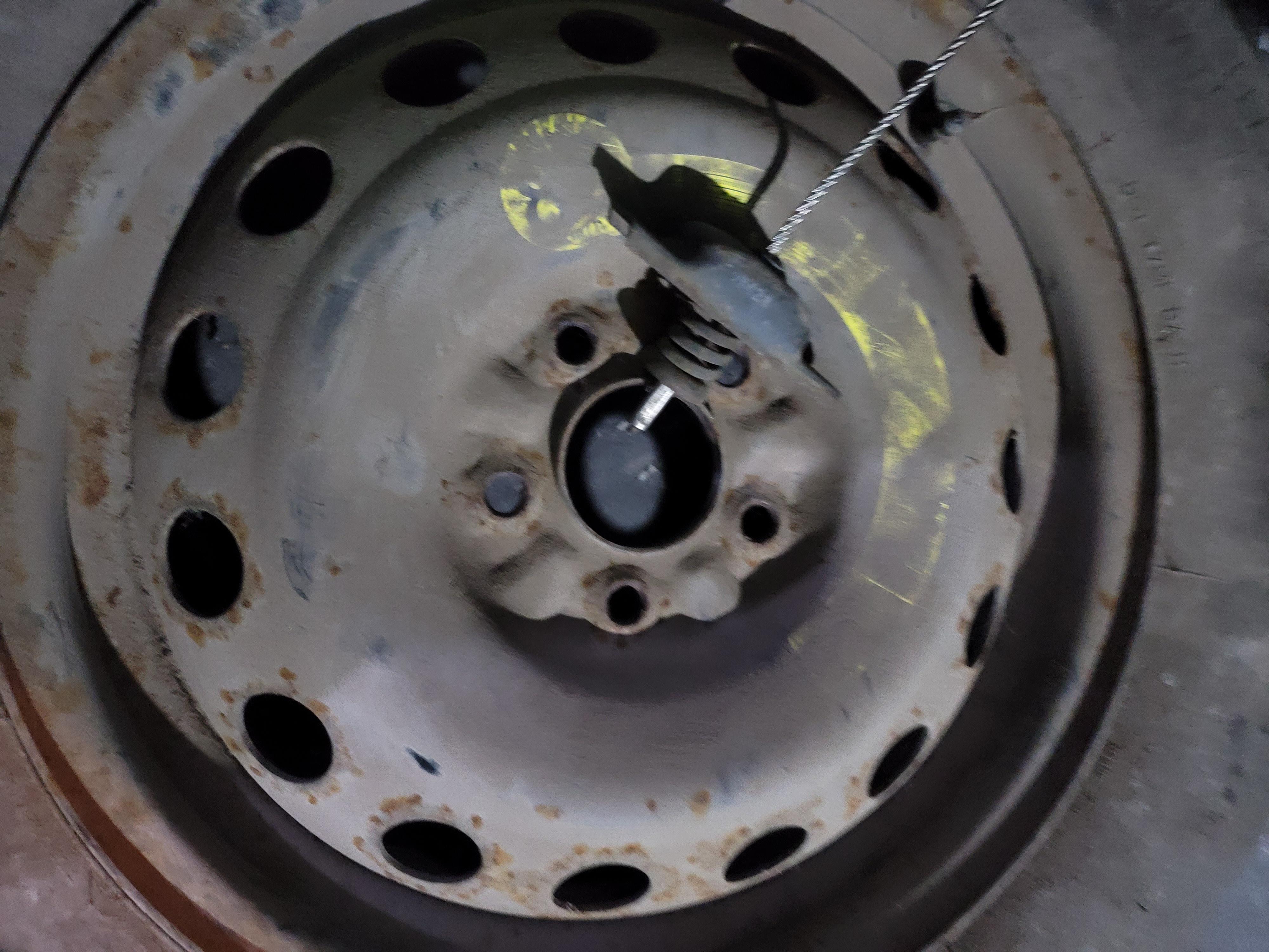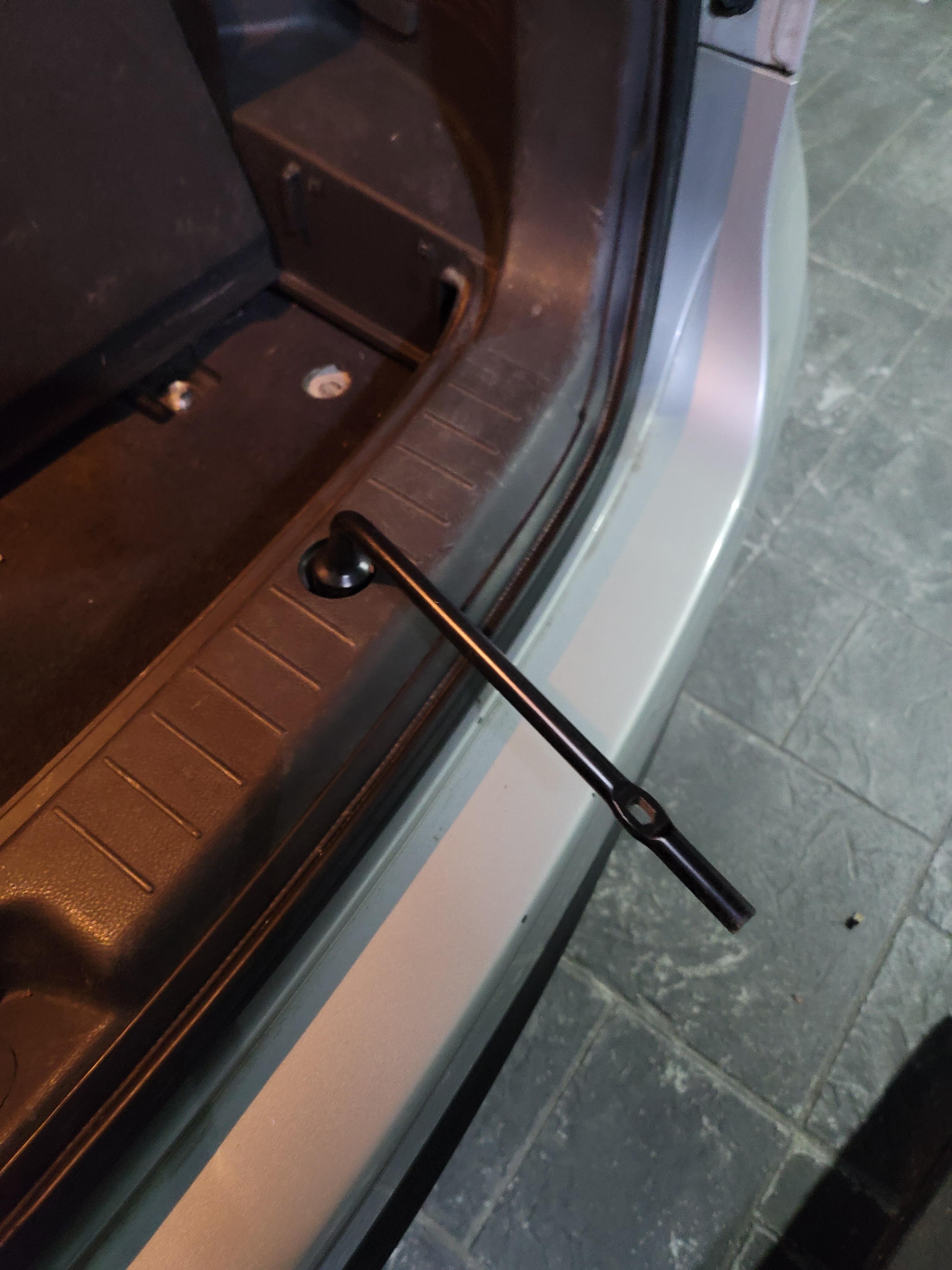 차에 같이 제공되는 장비로 스페어타이어를 고정하는 고리를 풀고 다시 조이는 과정입니다.