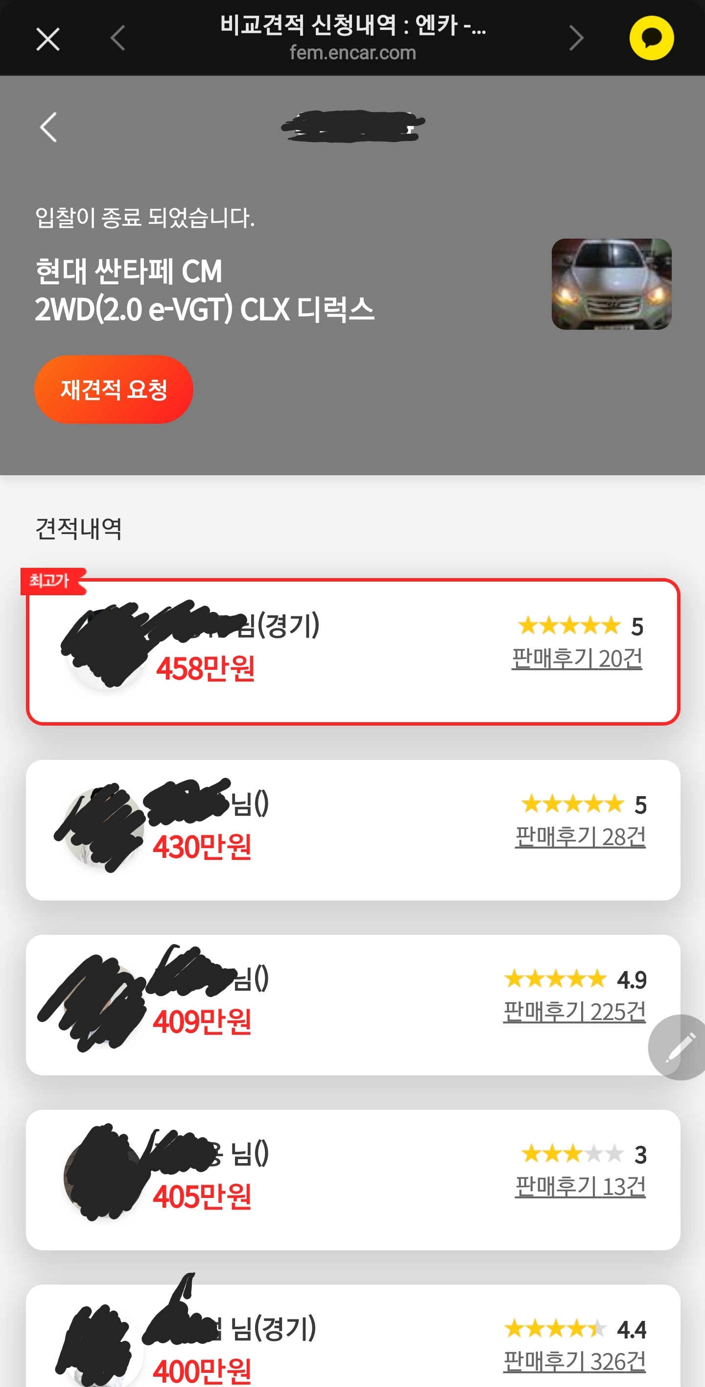 최고가부른 딜러가 별로일때 다른 딜러에게 연락 해 볼 수 없습니다. 장점은 딜러가 많다는 점이고, 단점은 현장 감가가 있다는 점입니다.(꽤나 많은 감가..후기만 믿고 골랐다간 큰코다침니다.)