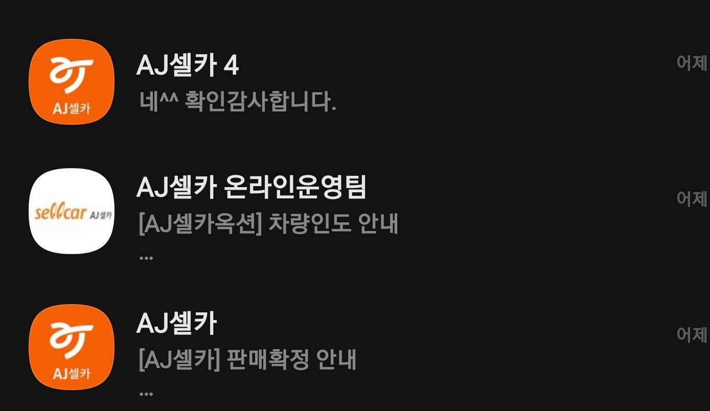 (광고의힘!)그 다음으로는 처제가 중고차를 구매한 엔카, 그 다름으로 KB차차차, 첫차, 직차, AJ 셀카 순으로 사용해봤습니다. 그리고 다 사용해본 결과 개인적인 경험에 기반한 뇌피셜 모델에 추론 결과는 AJ셀카를 추천한다 입니다. 정말 속편하게 거래 할 수 있습니다.