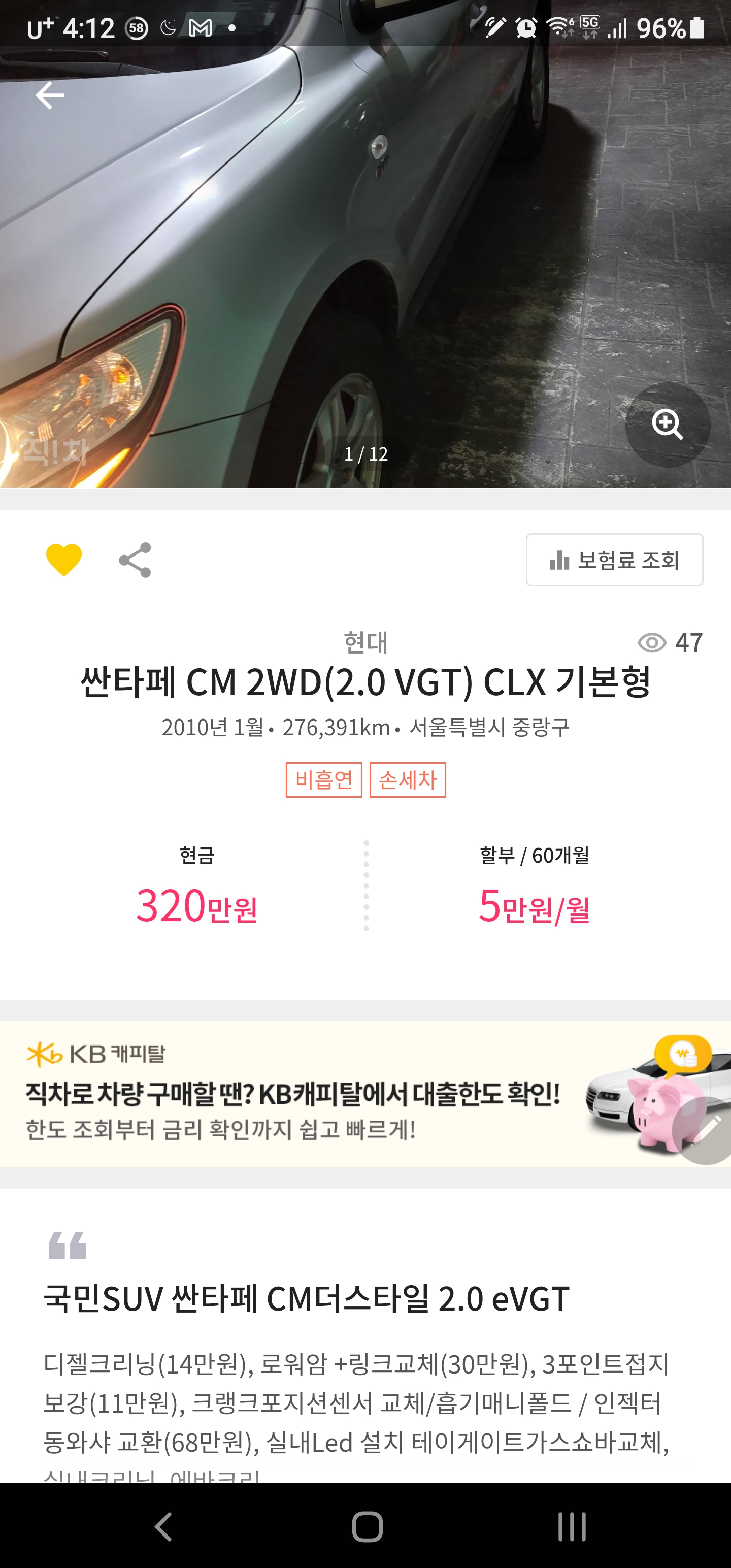 아이 등하원이랑 캠핑용으로 장인어른에게서 업어온 싼타페CM 1년 채 못탔지만, 둘째가 태어나면서 당분간 쓸일도 없을 것 같아서 팔기로 결정했습니다.