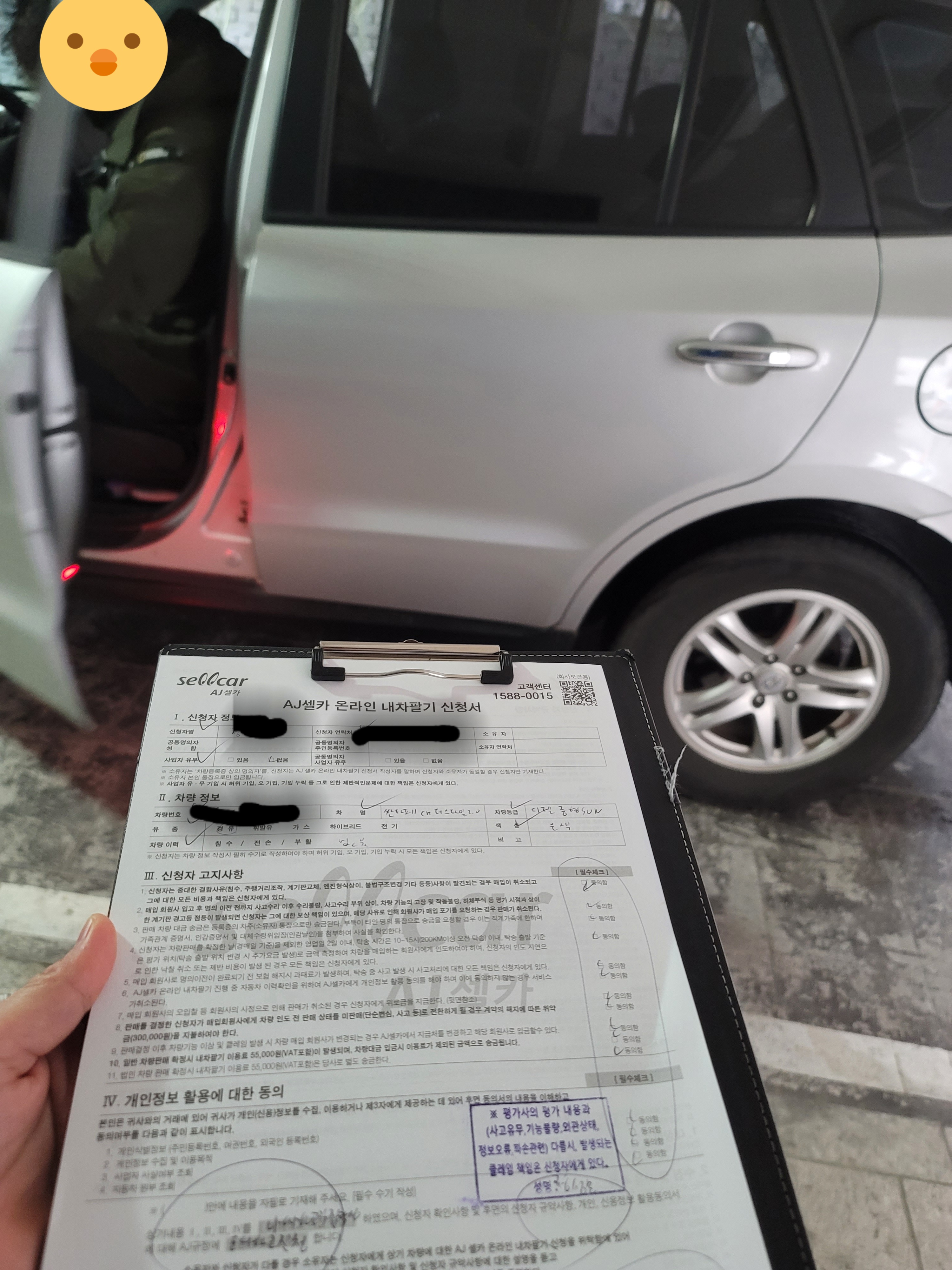 그리고 AJ셀카 직원분들 매우 친절하십니다. 감정사분도 친절했고, 경매 결과 판매하겠다고 하면, 직원분이 전화와서 필요한 서류와 탁송 시간약속 등을 하는데 매우 친절하게 잘 알려주셔서 잘했다 싶었어요.