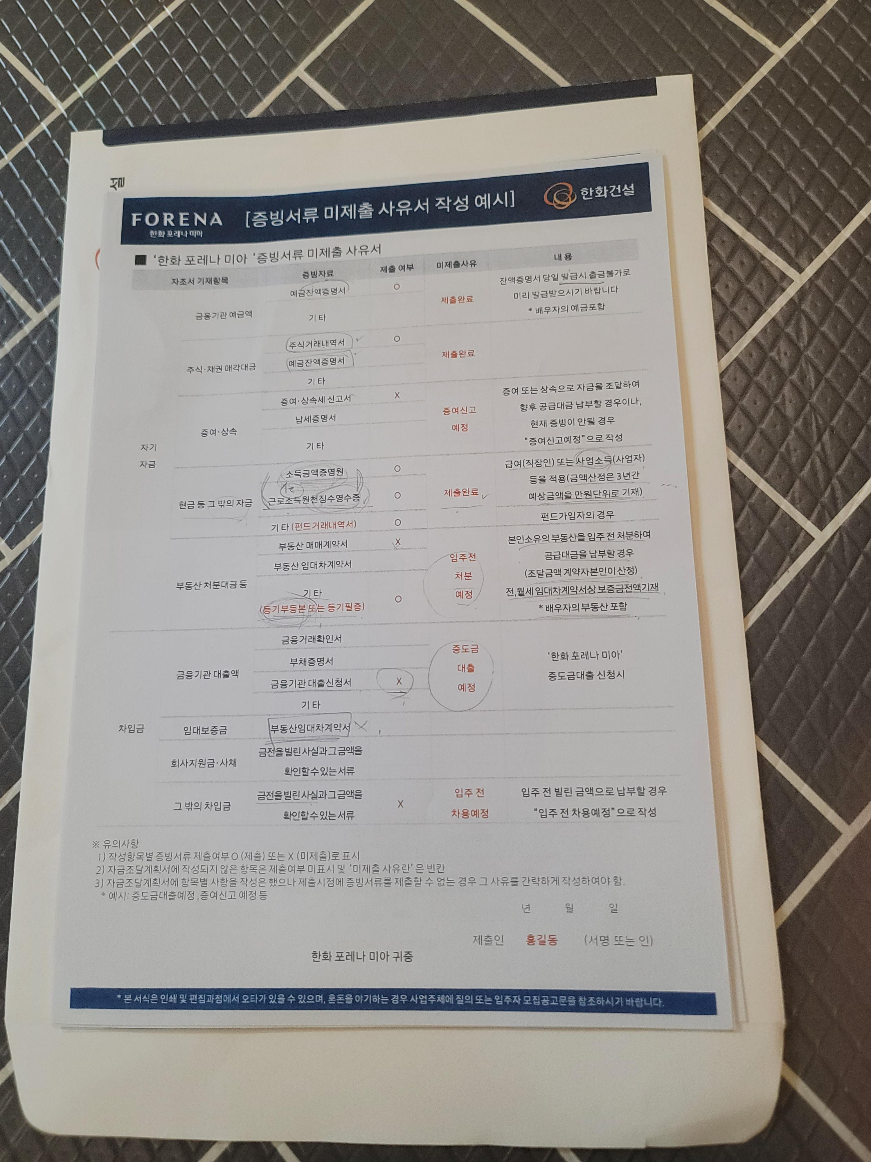 우선 계약전 절차를 확인하고 분양대금과 옵션비용을 계좌에 준비했습니다. 그리고 계약금 입금증과 자금조달계획서에 추가 필요한 서류를 준비해두고, 연차를 썼습니다.