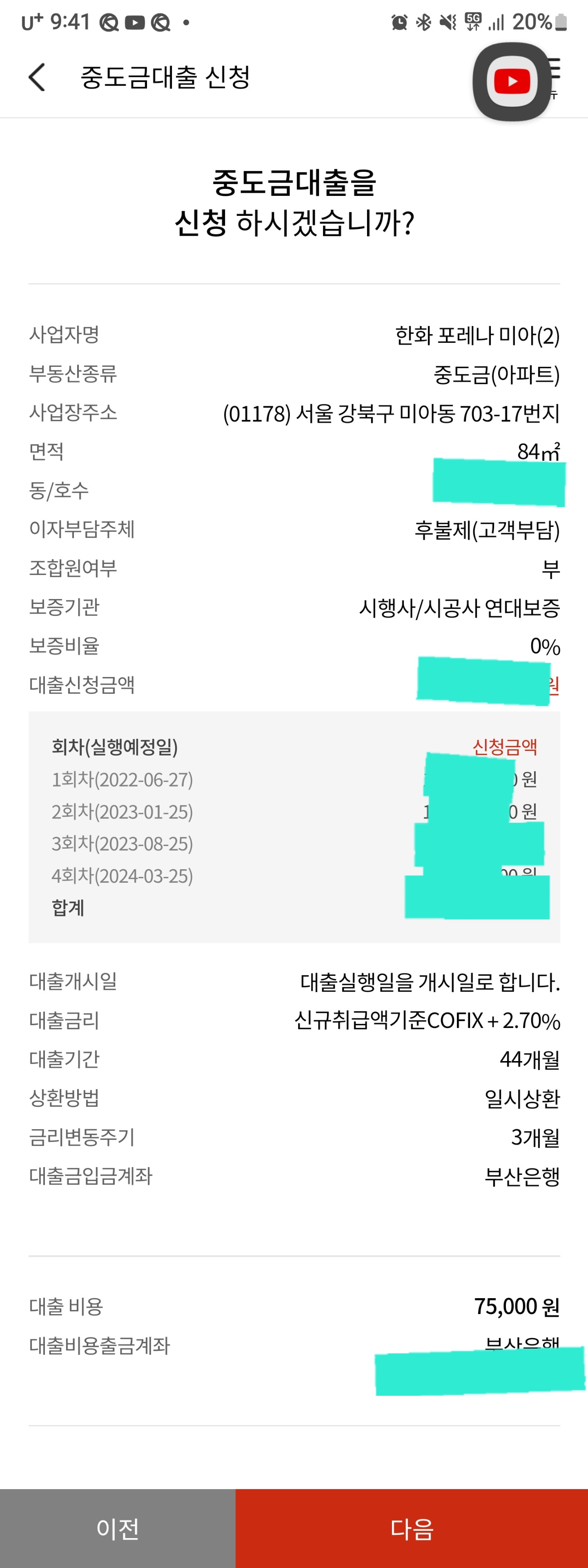 저희 경우에 중도금 대출은 부산은행에서 진행하게 되었는데,