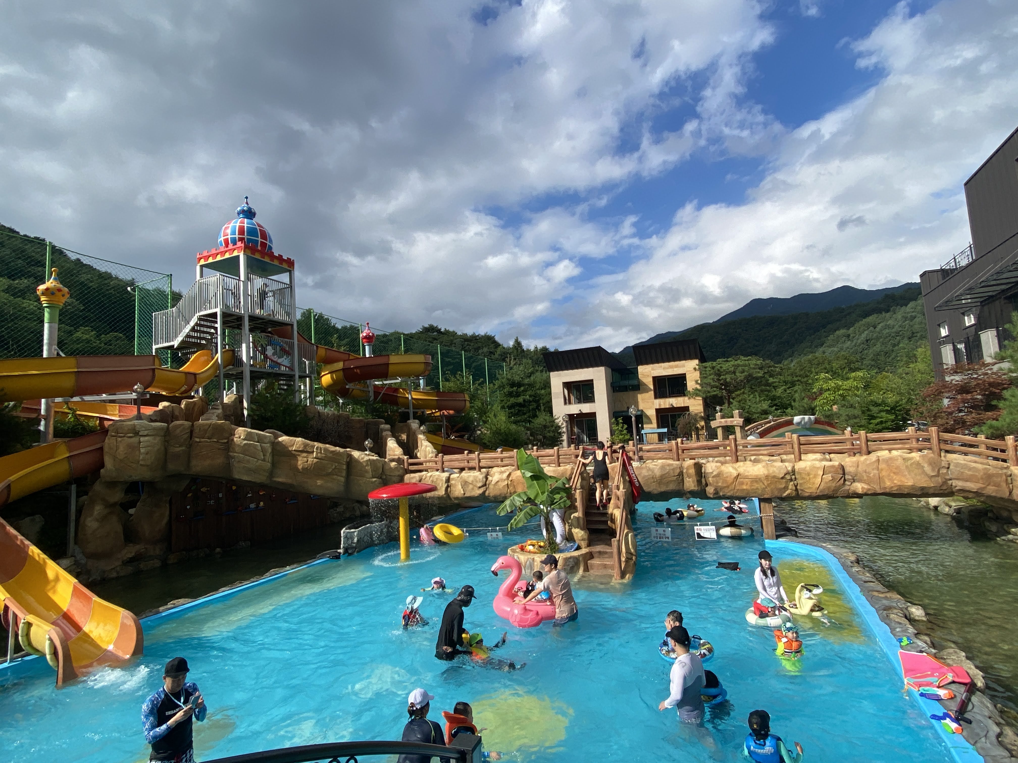 숙소 컨디션 관리에도 매우 신경을 많이 쓰고있고 무엇보다 아이들 놀기에 좋다. 얉은 물놀이터, 방방이, 두개의 풀장, 두개의 대형미끄럼틀, 카약체험코스까지 구성이 알차다.