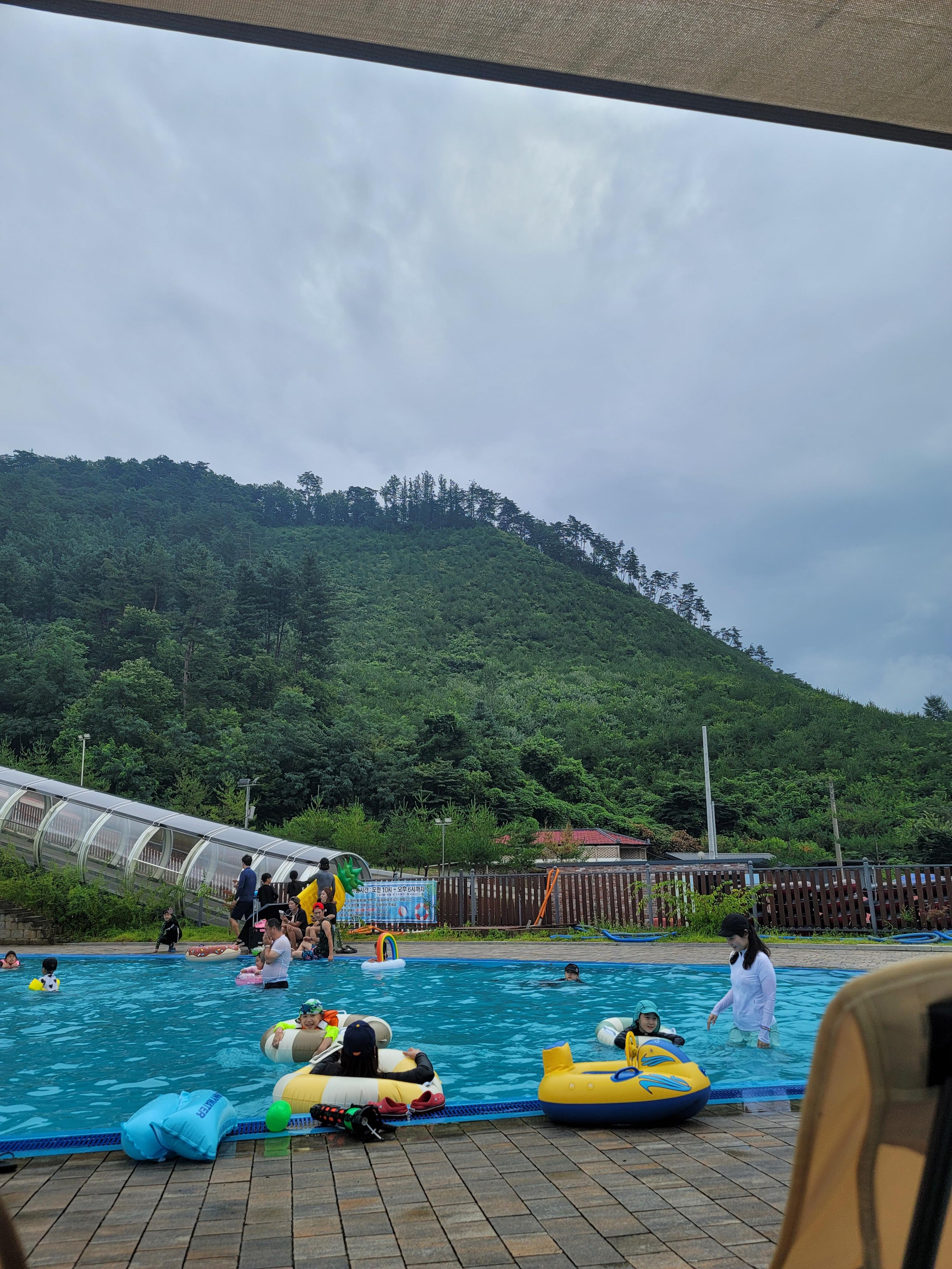 수영장이 개인이 운영하는 펜션인걸 감안하면 매우 크고 물놀이터, 풀장, 대형미끄럼틀로 구성되어 놀기에 좋다.