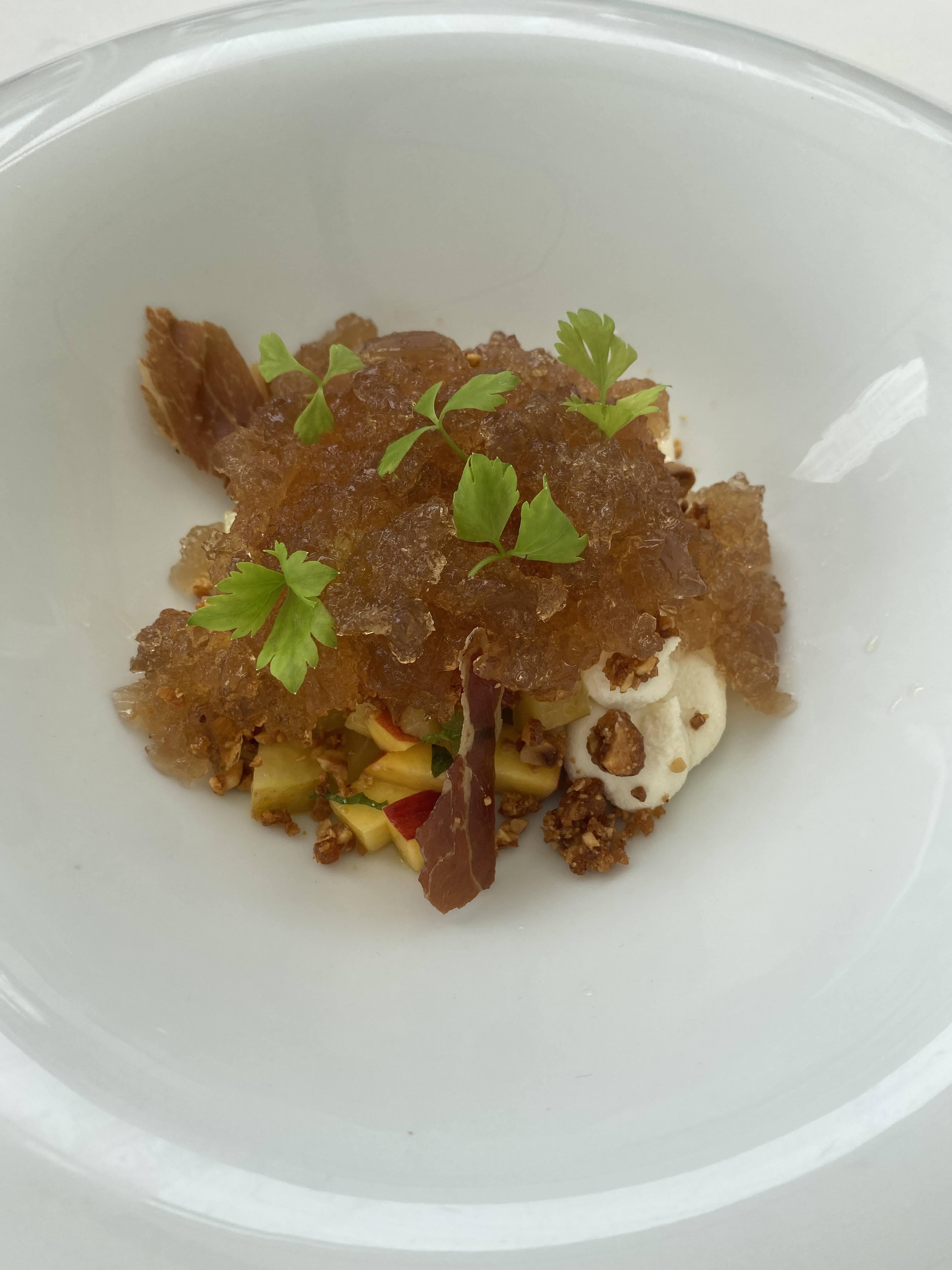 하몽도 들어있었는데 너무 맛있었다. 상콤 새콤 젤리로 입맛 돋우는 스타터로 딱이었다.