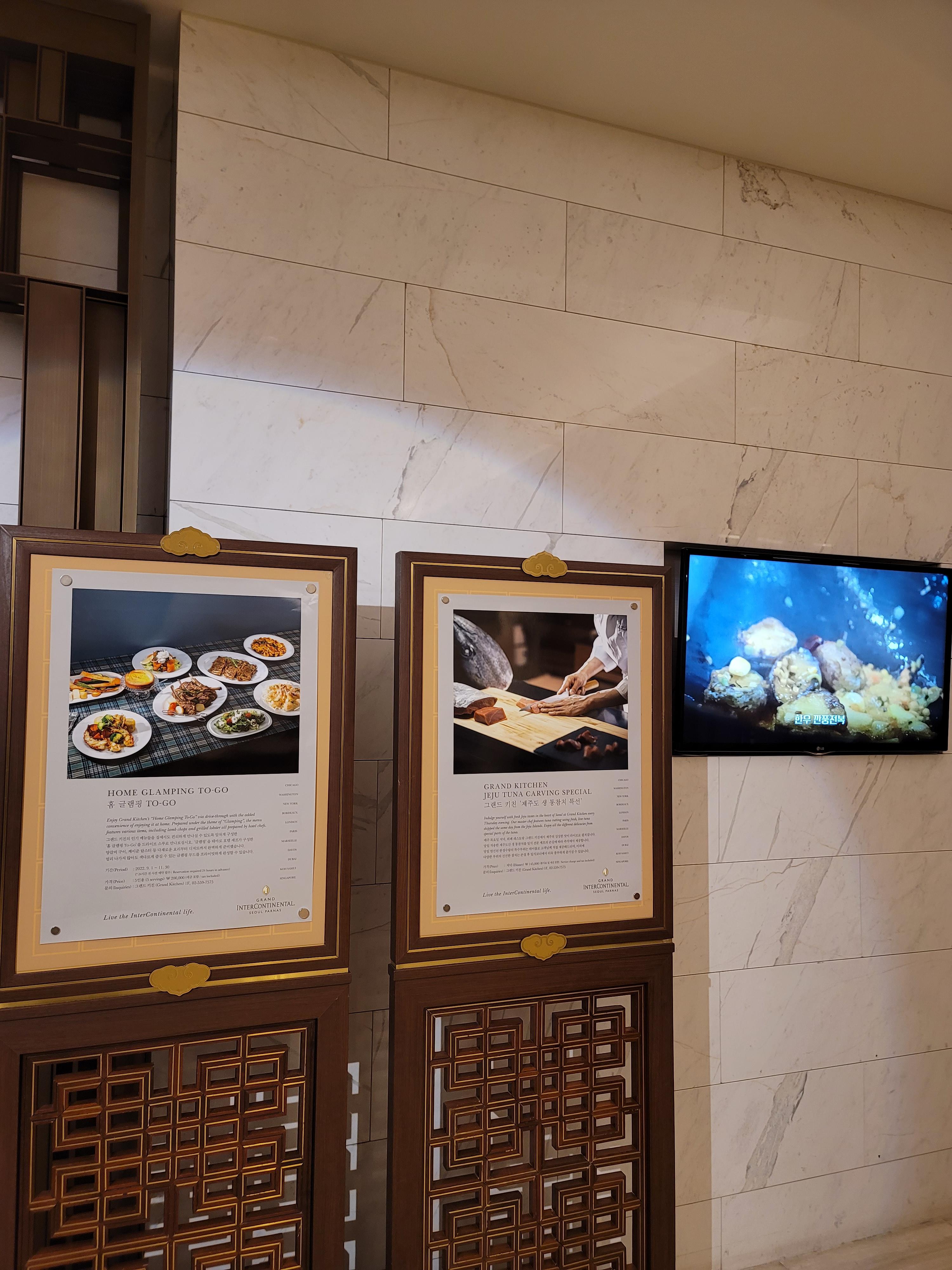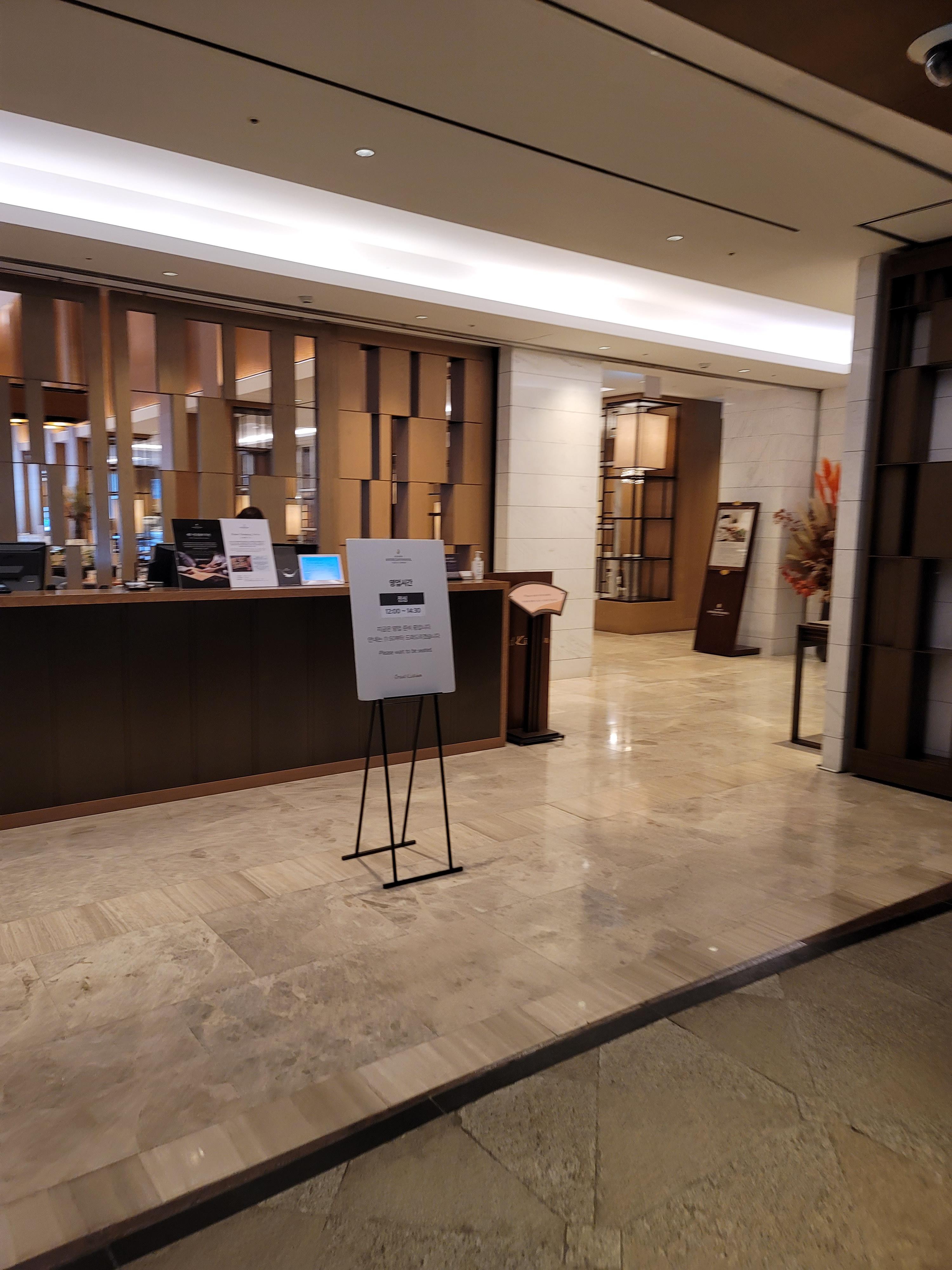 1층으 그랜드인터콘티넬탈 호텔 입구로 들어가면 컨시어지와 리셉션이 바로 보이는데 식당은 통로를 따라 조금 들어가야 보입니다. 호텔 공간과 식당 공간을 분리해둔것 같았는데 전체적으로 고급스럽고 차분한 호텔의 느낌과 냄새가 무척 마음에 들었습니다. 제가 방문한 때에 1층 홀에는 미술품전시도하고 있었습니다.