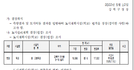 창문여고는 면적을 수정했네요