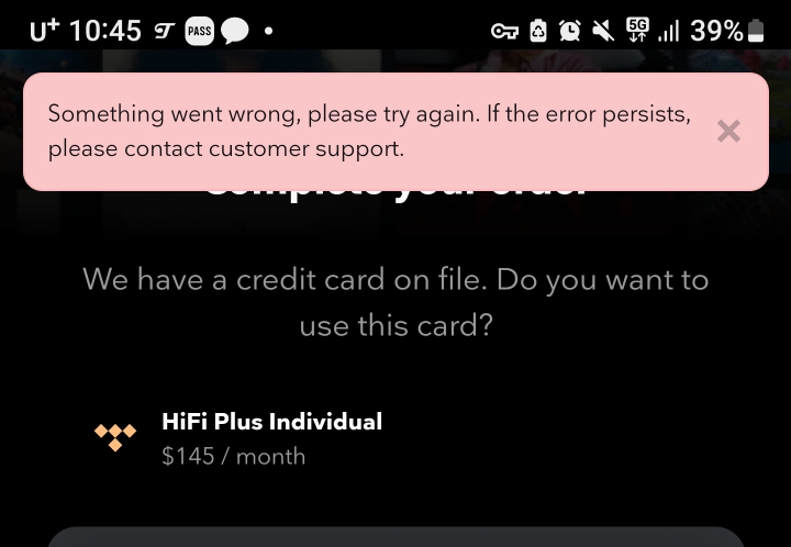 타이달쪽에서 아르헨티나에서 발급된 카드만 결재되도록 지불프로세스를 제한했다고 합니다.