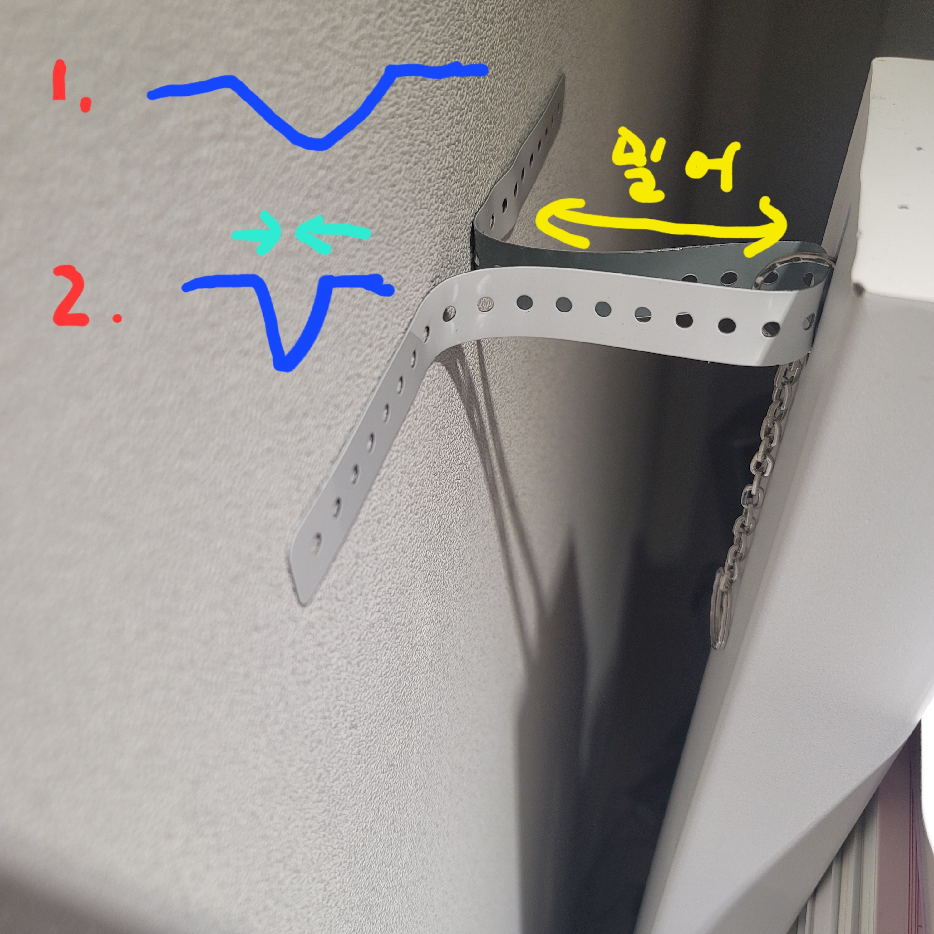 7살 3살 아이와 함께 사는 집에서는 어느것 하나 쉽지 않네요. 오늘은 철재 책선반 흔들림 방지 해봤습니다.