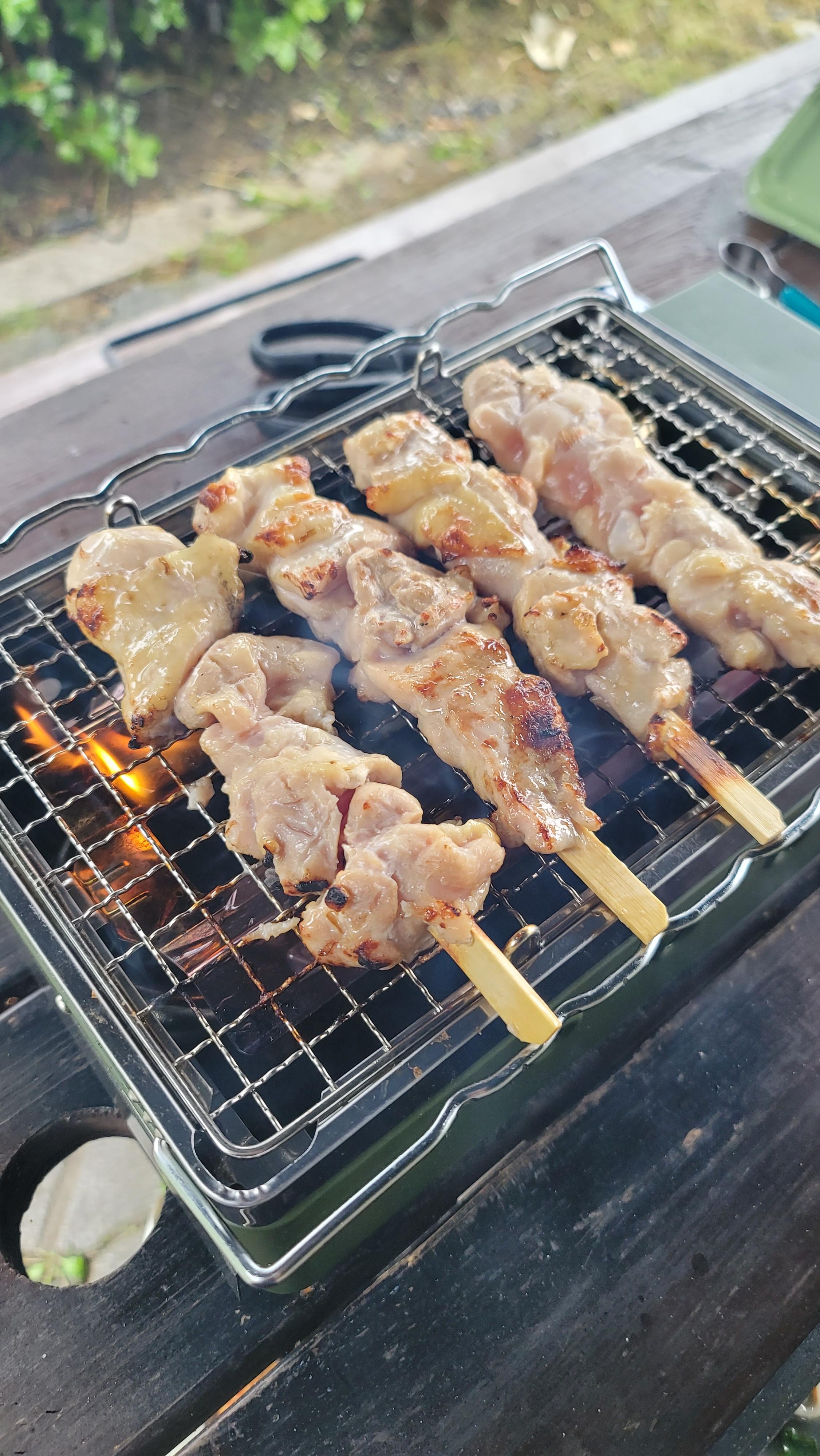 자충매트2개 돗자리매트2개 구이바다 장장 숯 여벌 옷 음식 바베큐의자 2개 침낭 설겆이통