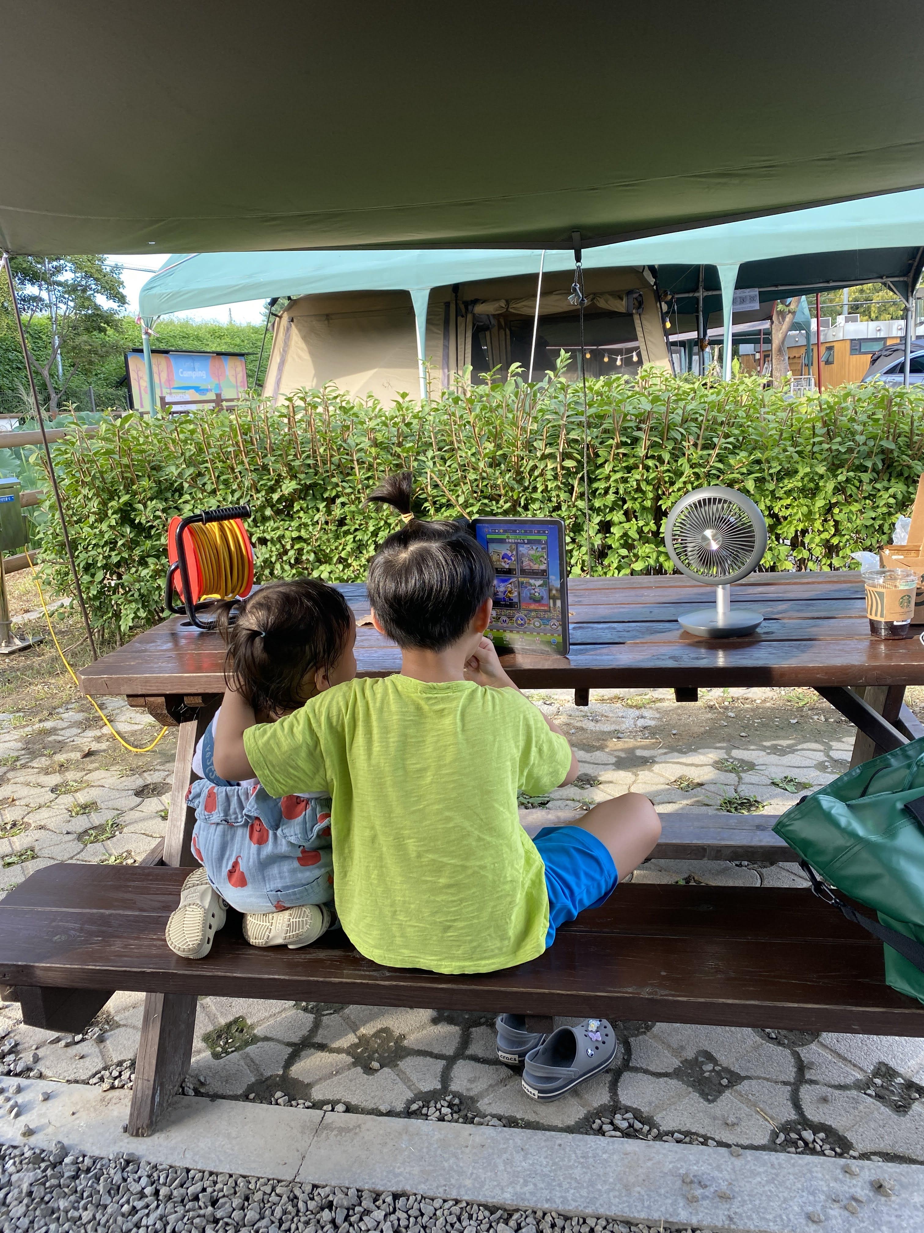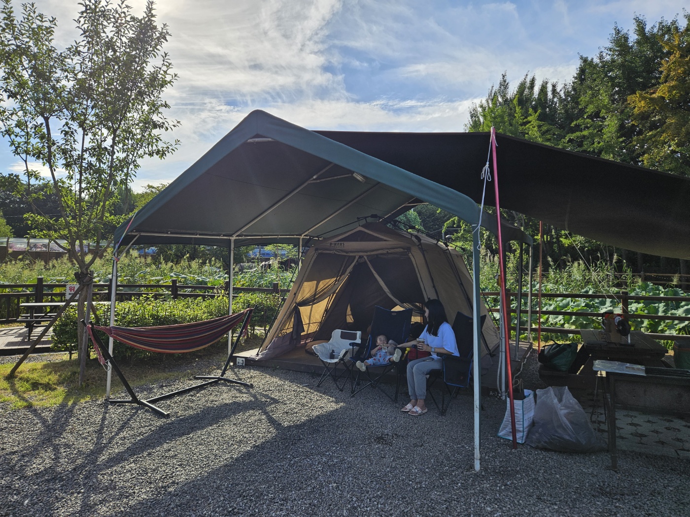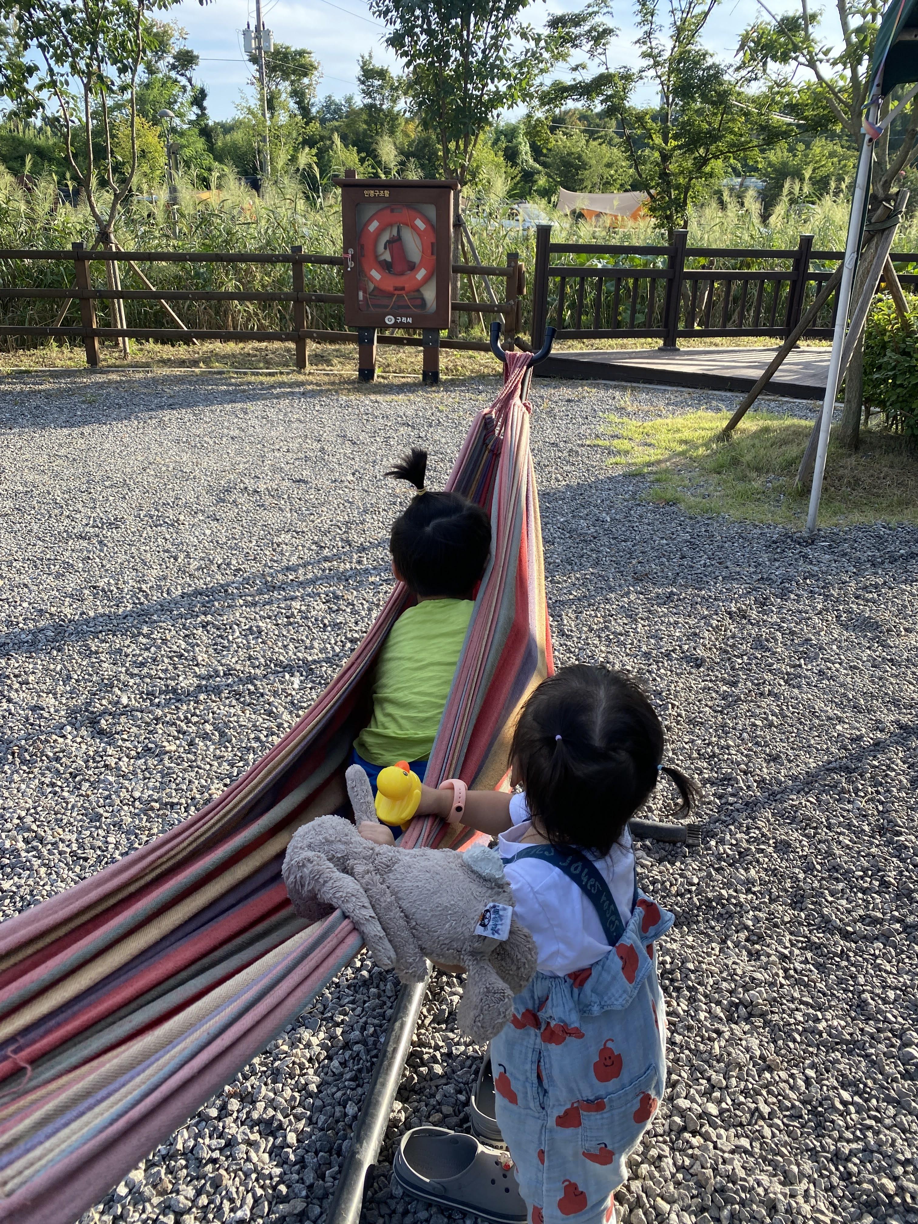 이지캠핑이라고 미리 텐트가 쳐져있고 데크위에 바닥매트까지만 깔려있는 곳에서 시간을 보냈는데.
