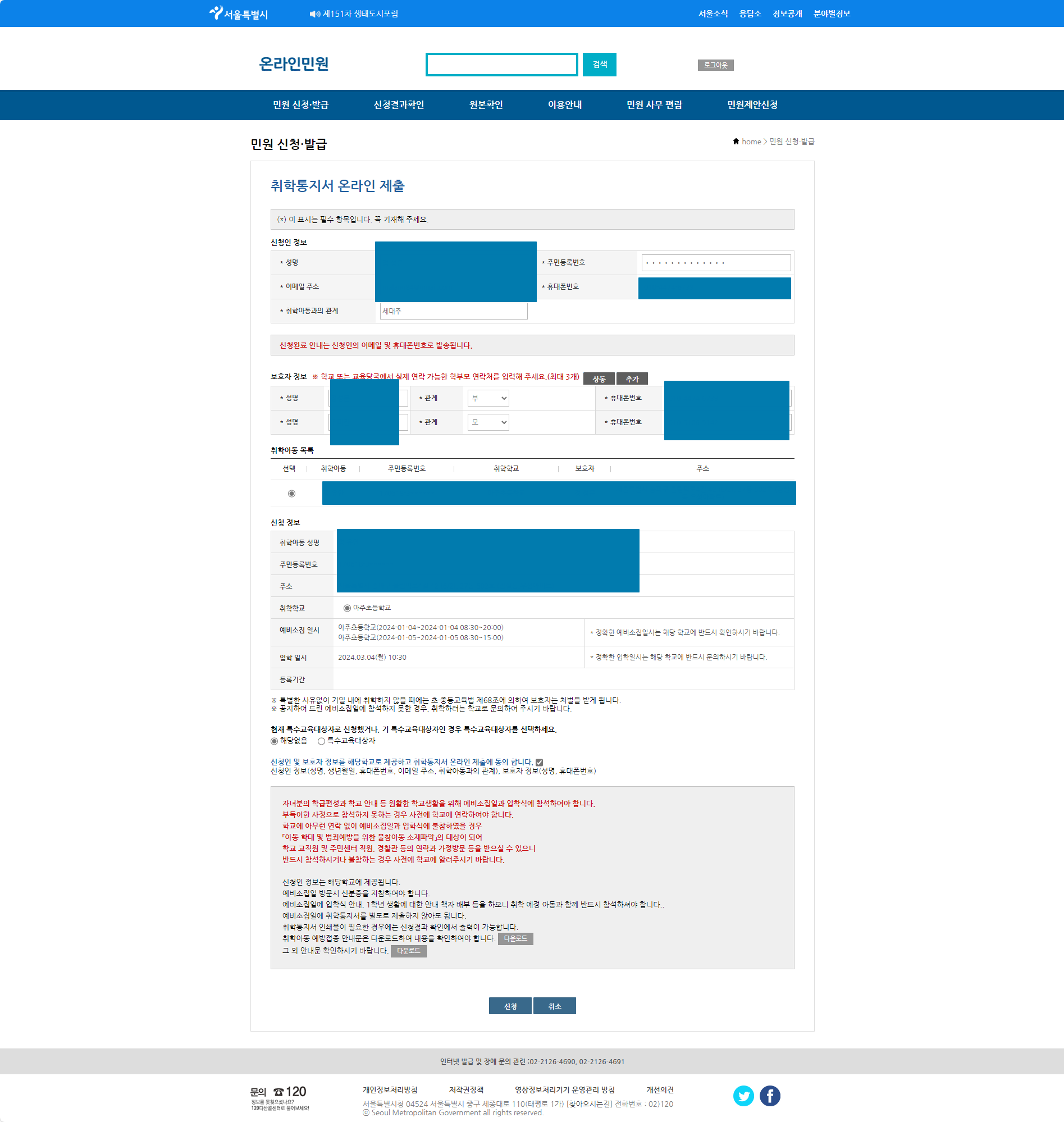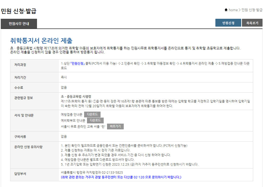 서울시에서는 초등학교 취학통지서 온라인제출 서비스를 제공합니다.
