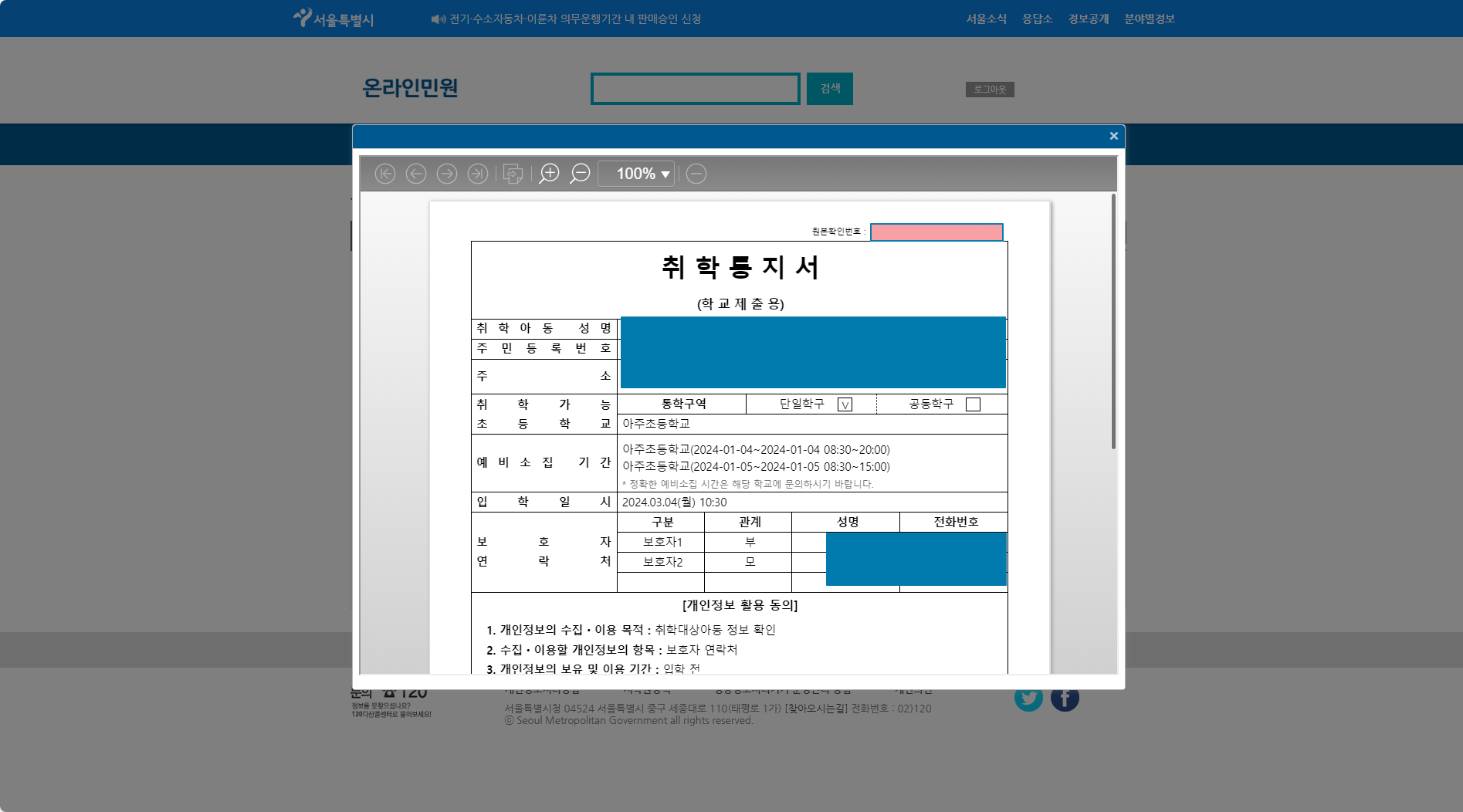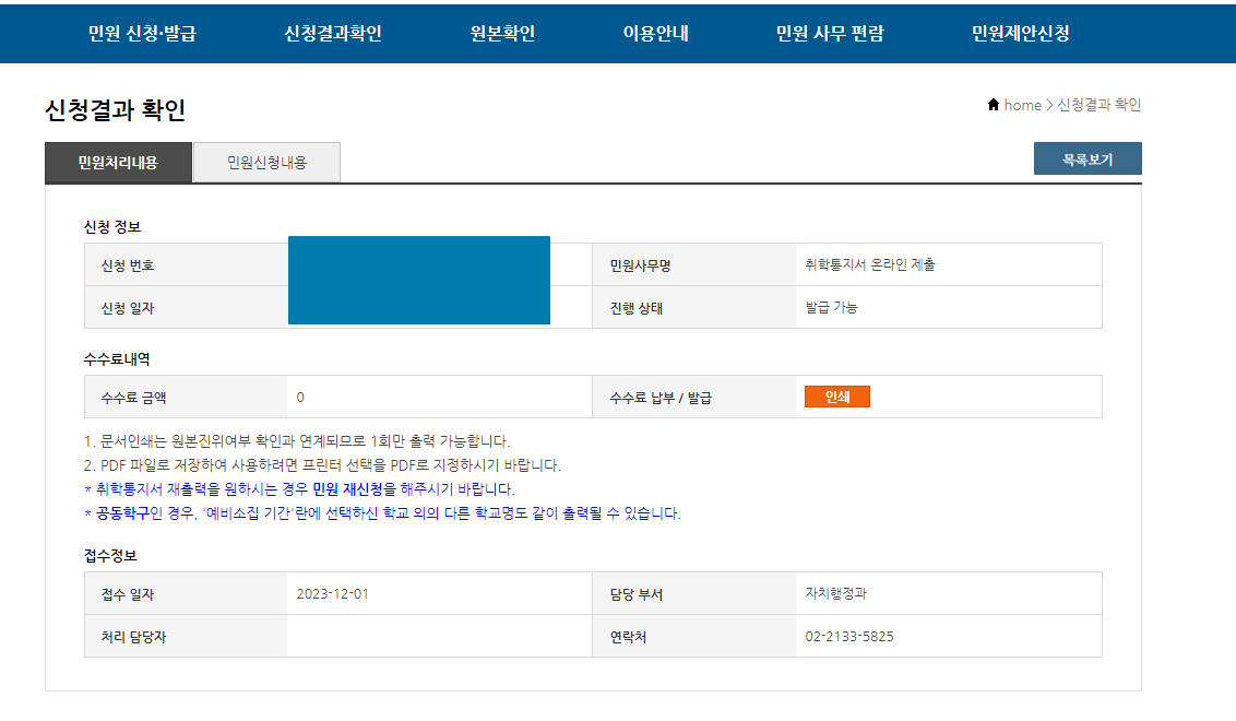 제출된 취학 통지서를 조회 할 수 있습니다.