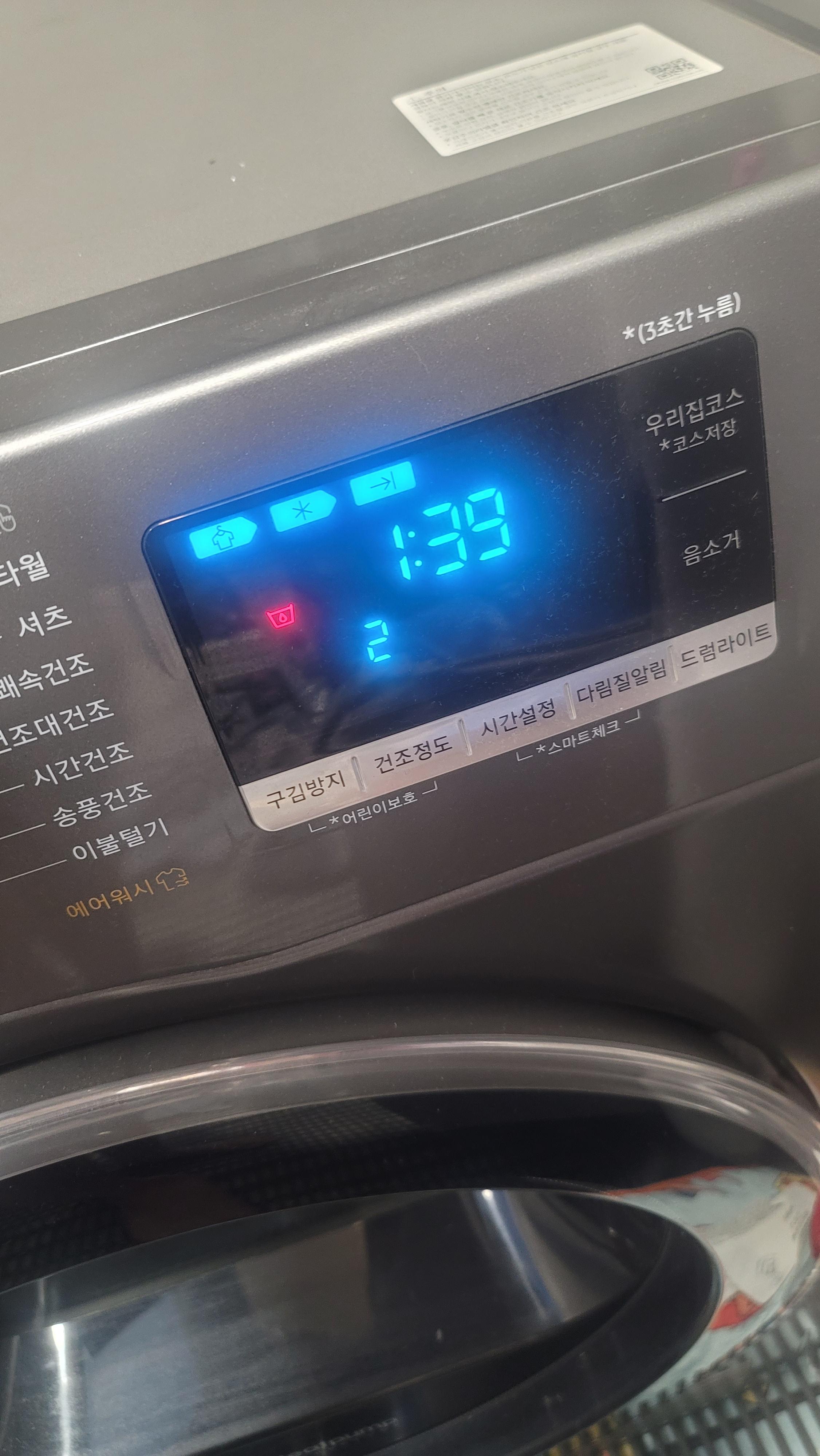 사용시 드르륵 드릴소리(?)만나고 2,3회 드르륵 소리 후에 빨간 물방울(배수안됨) 표시기 표출됩니다.
