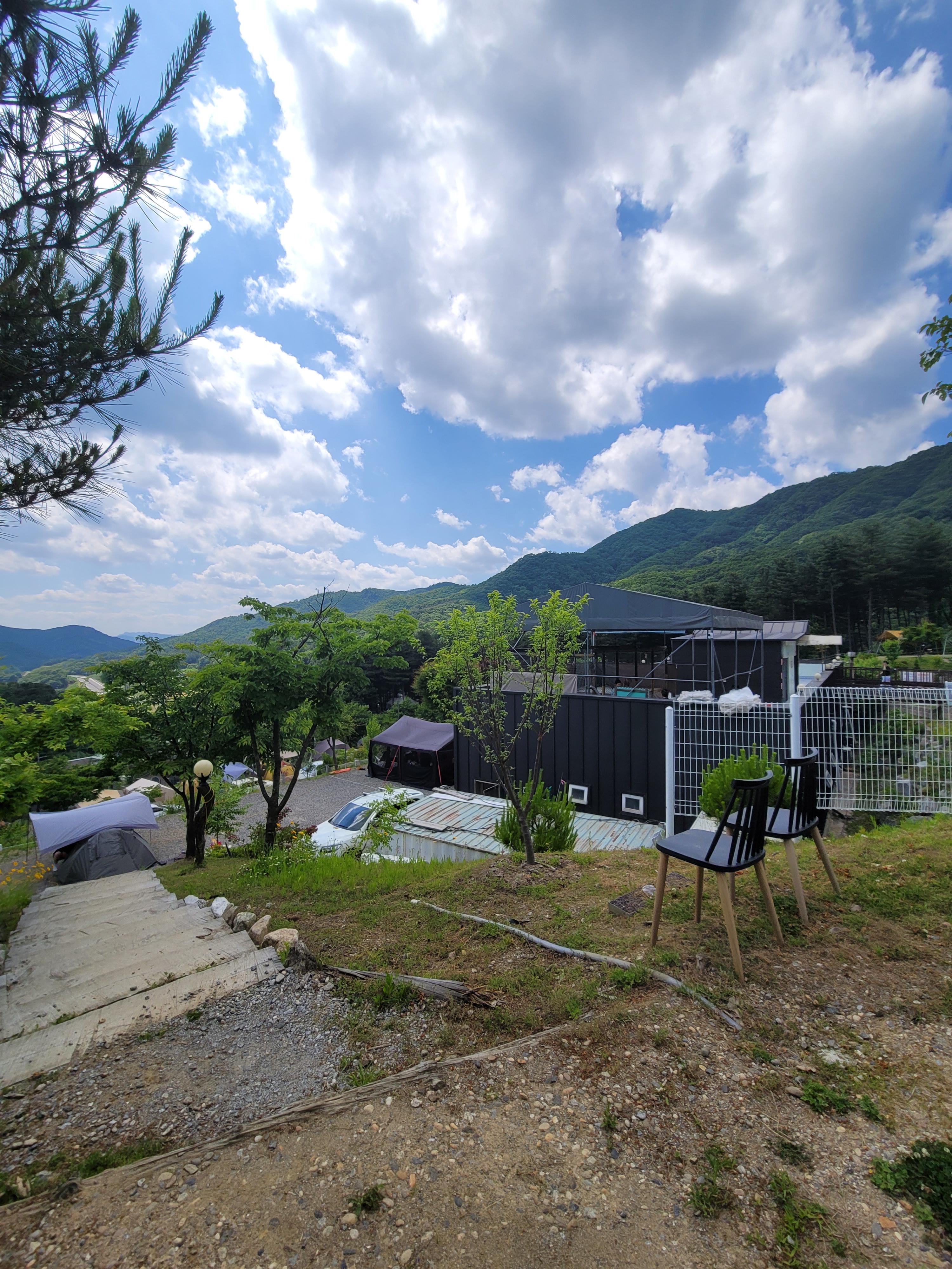 서울근교, 친절한 캠장님, 많은사이트(70), 전망이 좋음, 산바람이 쎔, 드라이기없음, 방방이있음, 6월21일 수영장개장예정, 사이트간격은 좁지만 사이트별로 다름
