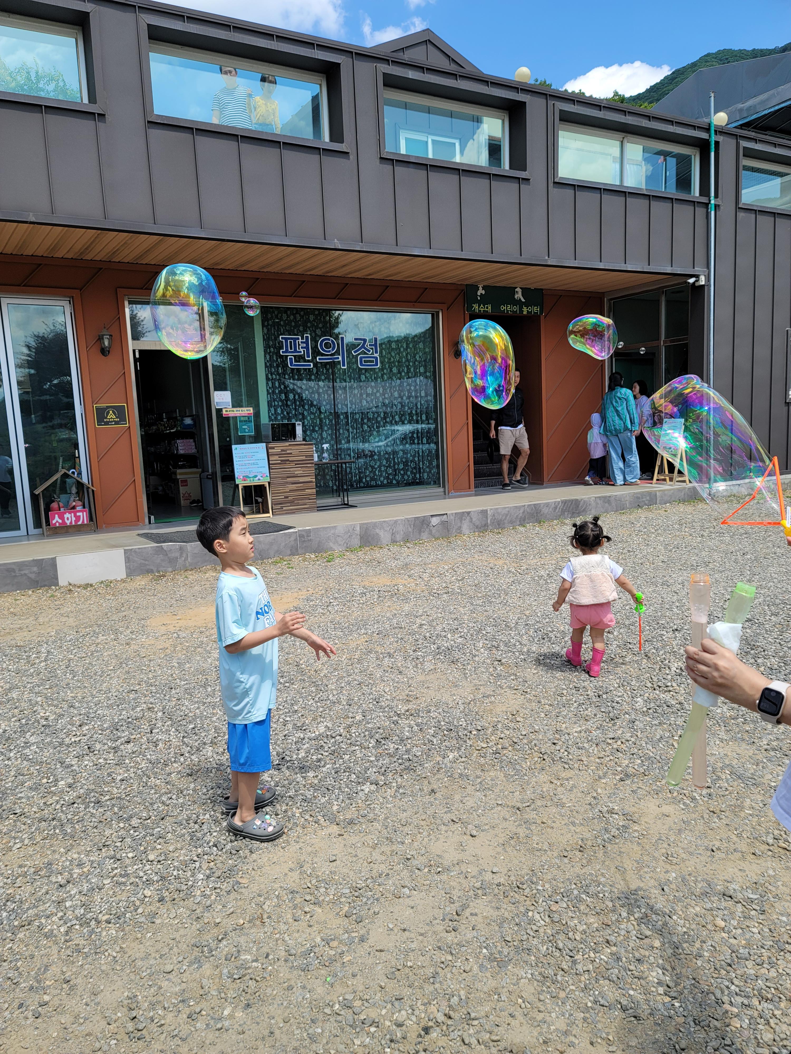 사장님이 찬조해주신 비누방울총으로 재미있게 놀았습니다.