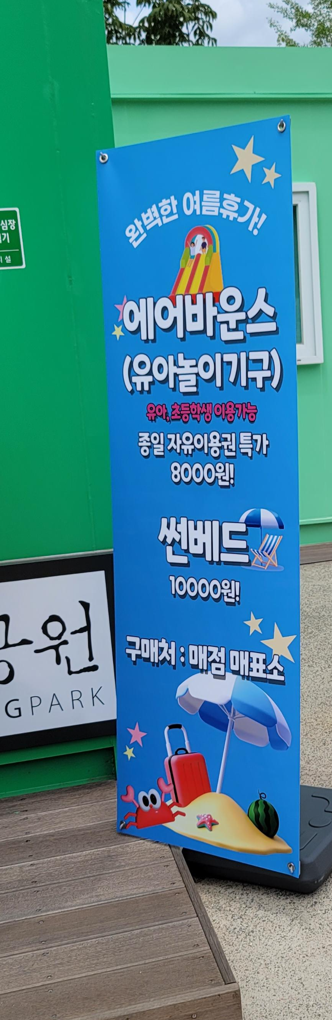 에어바운스와 물놀이 액티비티를 즐길 수 있는 곳도 안쪽에 있습니다.